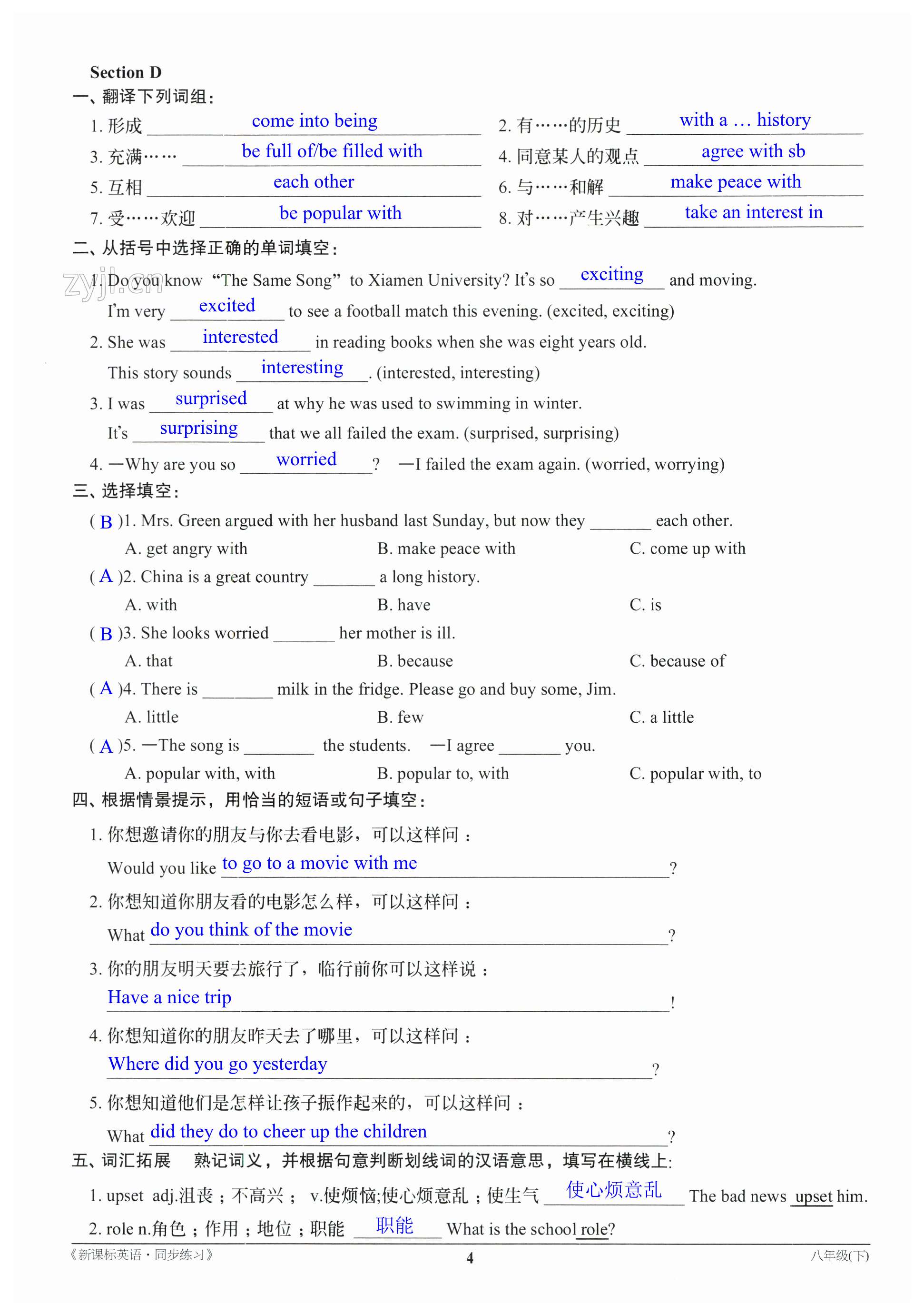 注:目前有些书本章节名称可能整理的还不是很完善,但都是按照顺序排列的,请同学们按照顺序仔细查找。练习册 2023年新课标英语同步练习八年级下册仁爱版 答案主要是用来给同学们做完题方便对答案用的,请勿直接抄袭。