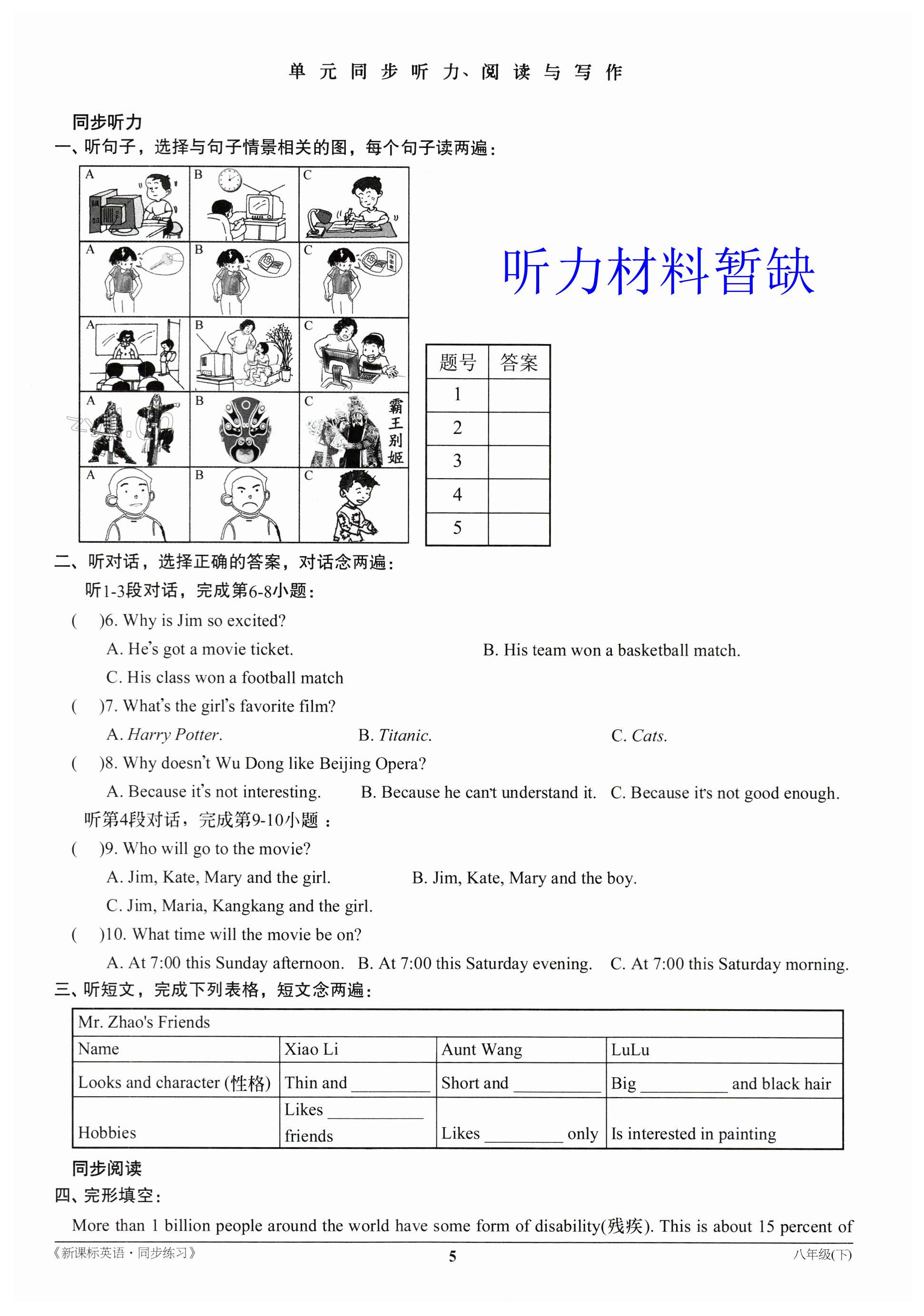 注:目前有些书本章节名称可能整理的还不是很完善,但都是按照顺序排列的,请同学们按照顺序仔细查找。练习册 2023年新课标英语同步练习八年级下册仁爱版 答案主要是用来给同学们做完题方便对答案用的,请勿直接抄袭。