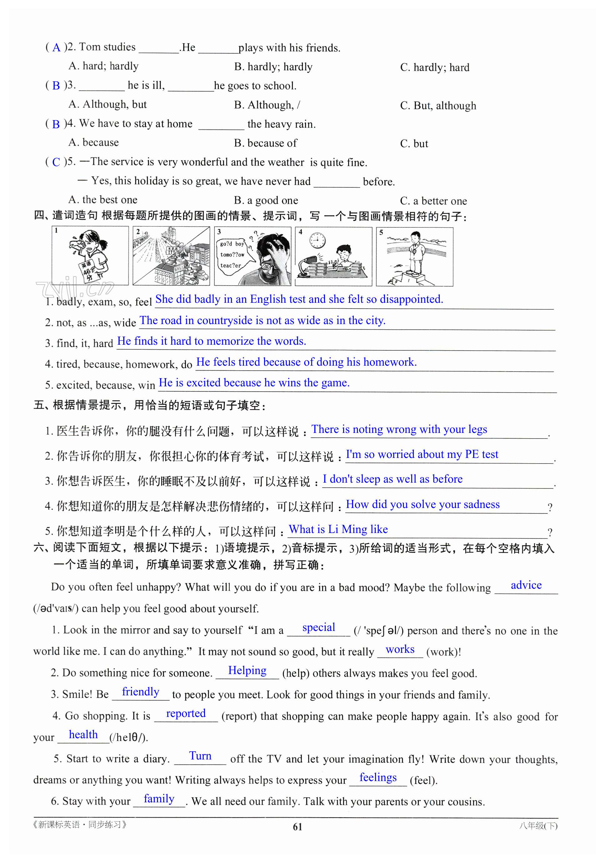 注:目前有些书本章节名称可能整理的还不是很完善,但都是按照顺序排列的,请同学们按照顺序仔细查找。练习册 2023年新课标英语同步练习八年级下册仁爱版 答案主要是用来给同学们做完题方便对答案用的,请勿直接抄袭。