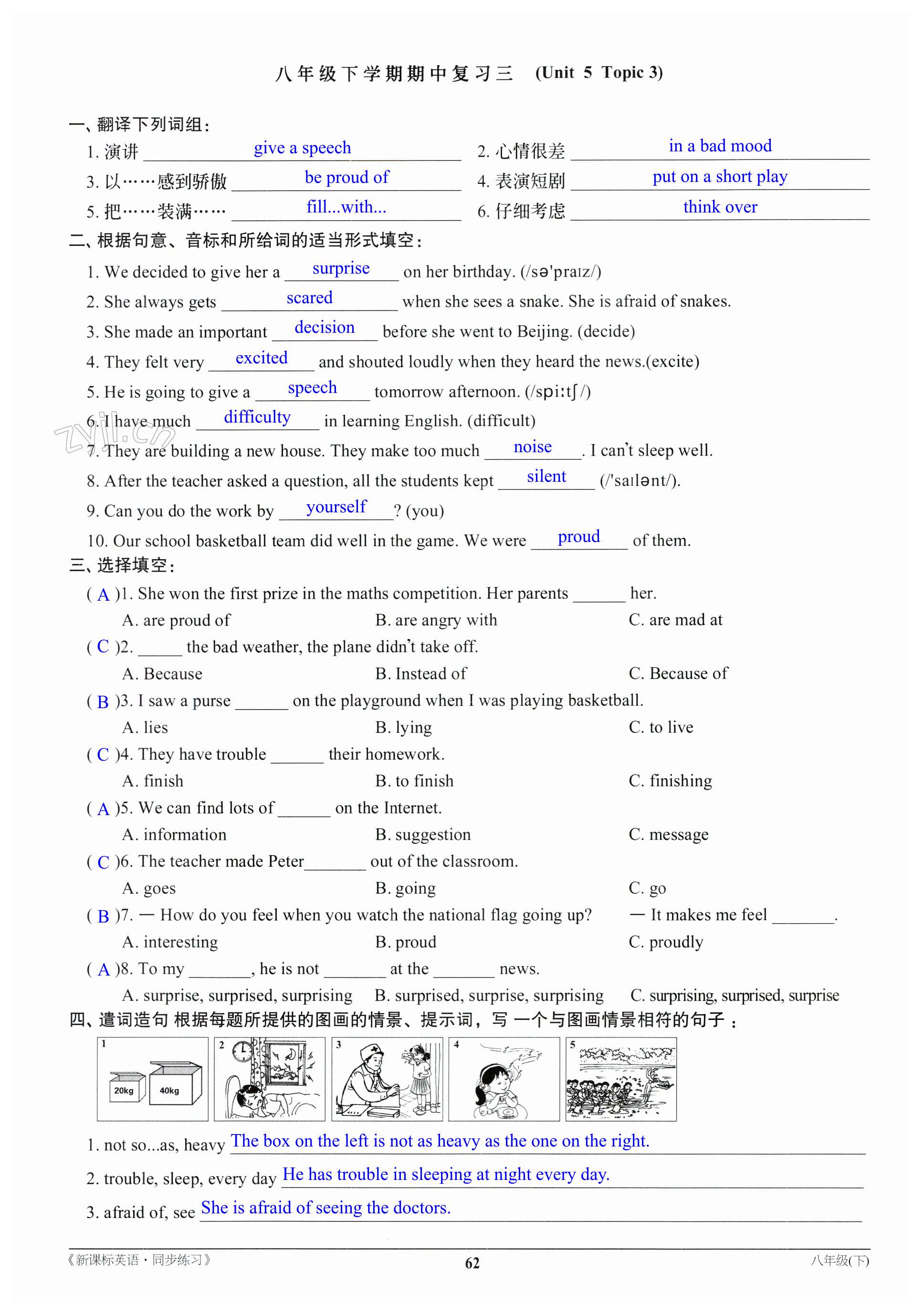 注:目前有些书本章节名称可能整理的还不是很完善,但都是按照顺序排列的,请同学们按照顺序仔细查找。练习册 2023年新课标英语同步练习八年级下册仁爱版 答案主要是用来给同学们做完题方便对答案用的,请勿直接抄袭。