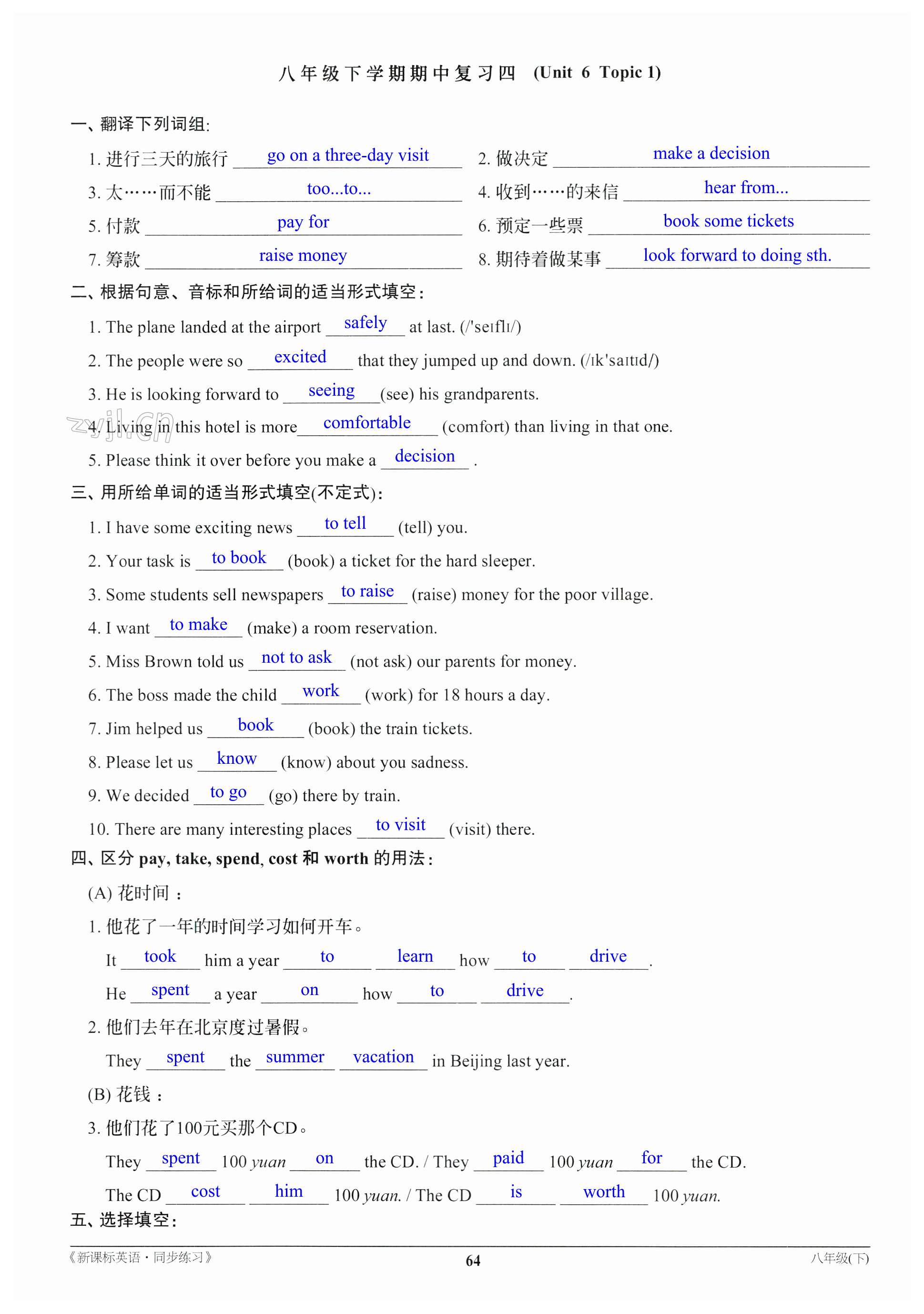 注:目前有些书本章节名称可能整理的还不是很完善,但都是按照顺序排列的,请同学们按照顺序仔细查找。练习册 2023年新课标英语同步练习八年级下册仁爱版 答案主要是用来给同学们做完题方便对答案用的,请勿直接抄袭。