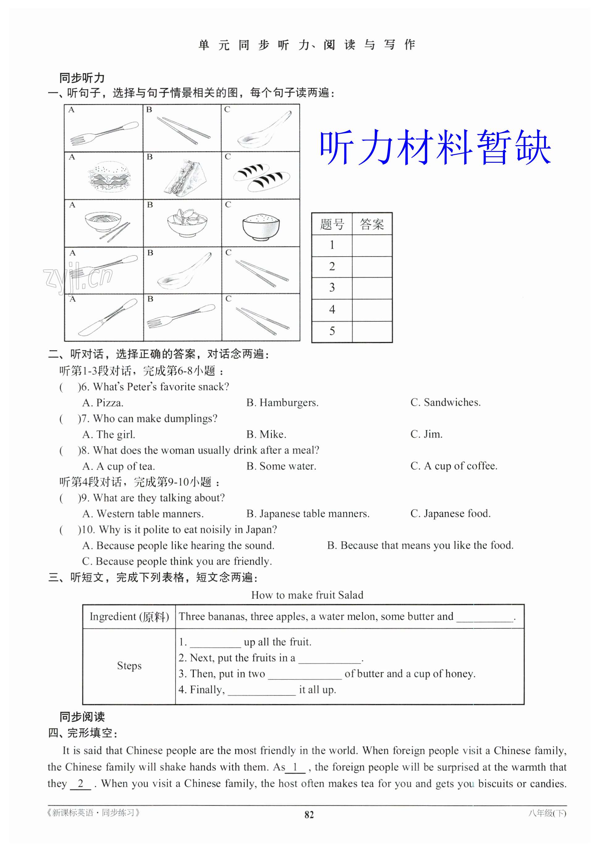 注:目前有些书本章节名称可能整理的还不是很完善,但都是按照顺序排列的,请同学们按照顺序仔细查找。练习册 2023年新课标英语同步练习八年级下册仁爱版 答案主要是用来给同学们做完题方便对答案用的,请勿直接抄袭。