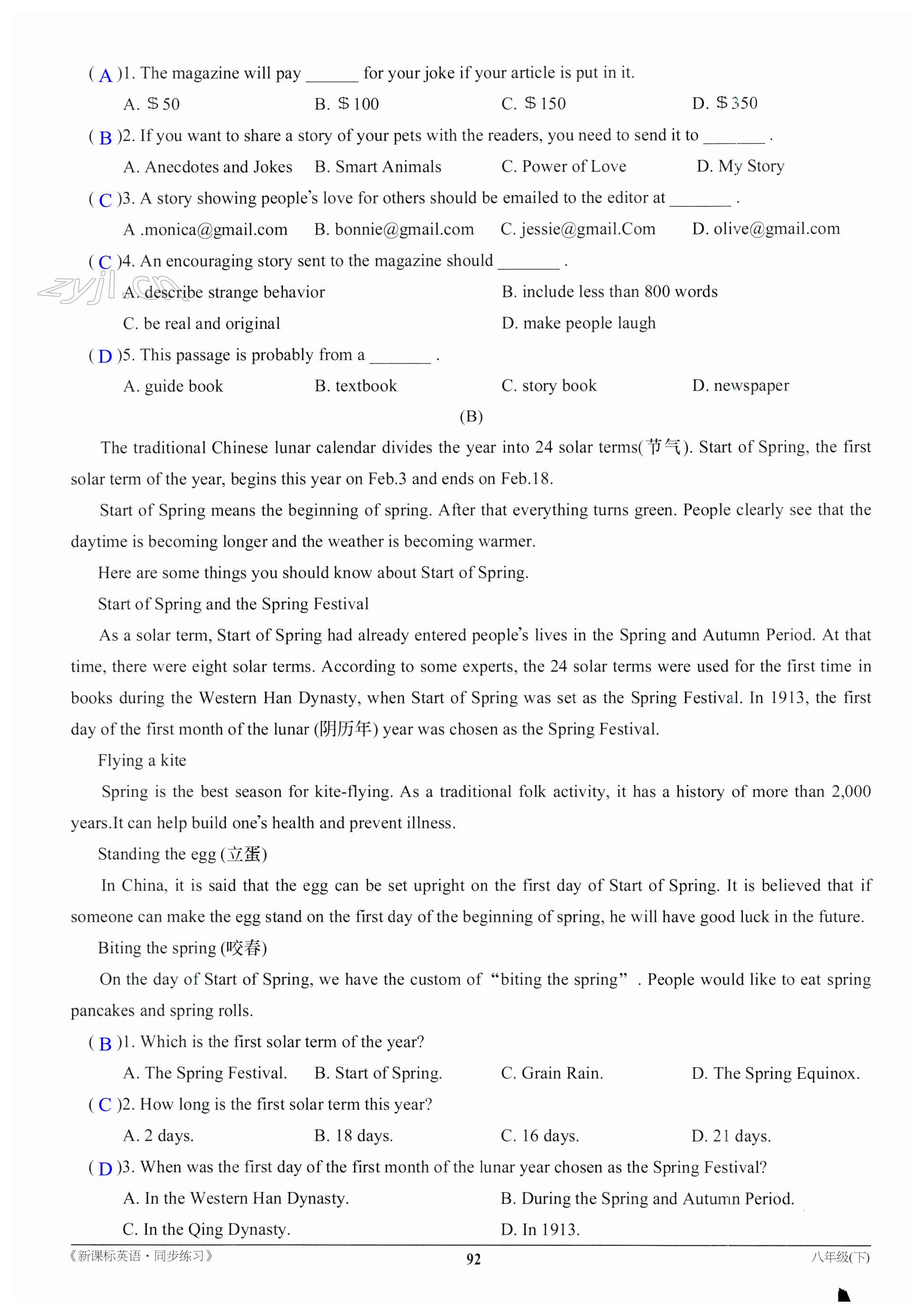 注:目前有些书本章节名称可能整理的还不是很完善,但都是按照顺序排列的,请同学们按照顺序仔细查找。练习册 2023年新课标英语同步练习八年级下册仁爱版 答案主要是用来给同学们做完题方便对答案用的,请勿直接抄袭。