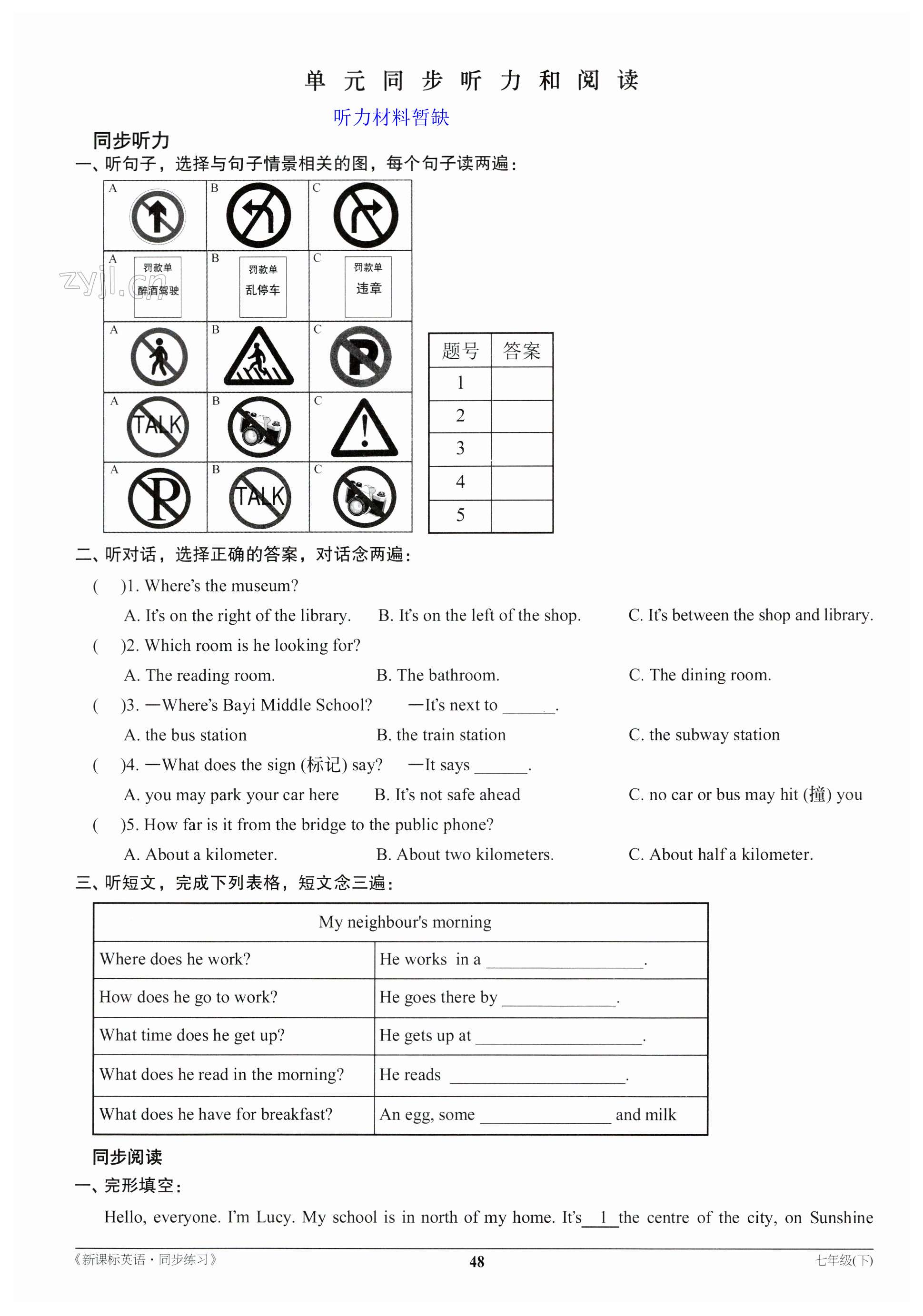 注:目前有些书本章节名称可能整理的还不是很完善,但都是按照顺序排列的,请同学们按照顺序仔细查找。练习册 2023年新课标同步练习七年级英语下册仁爱版 答案主要是用来给同学们做完题方便对答案用的,请勿直接抄袭。