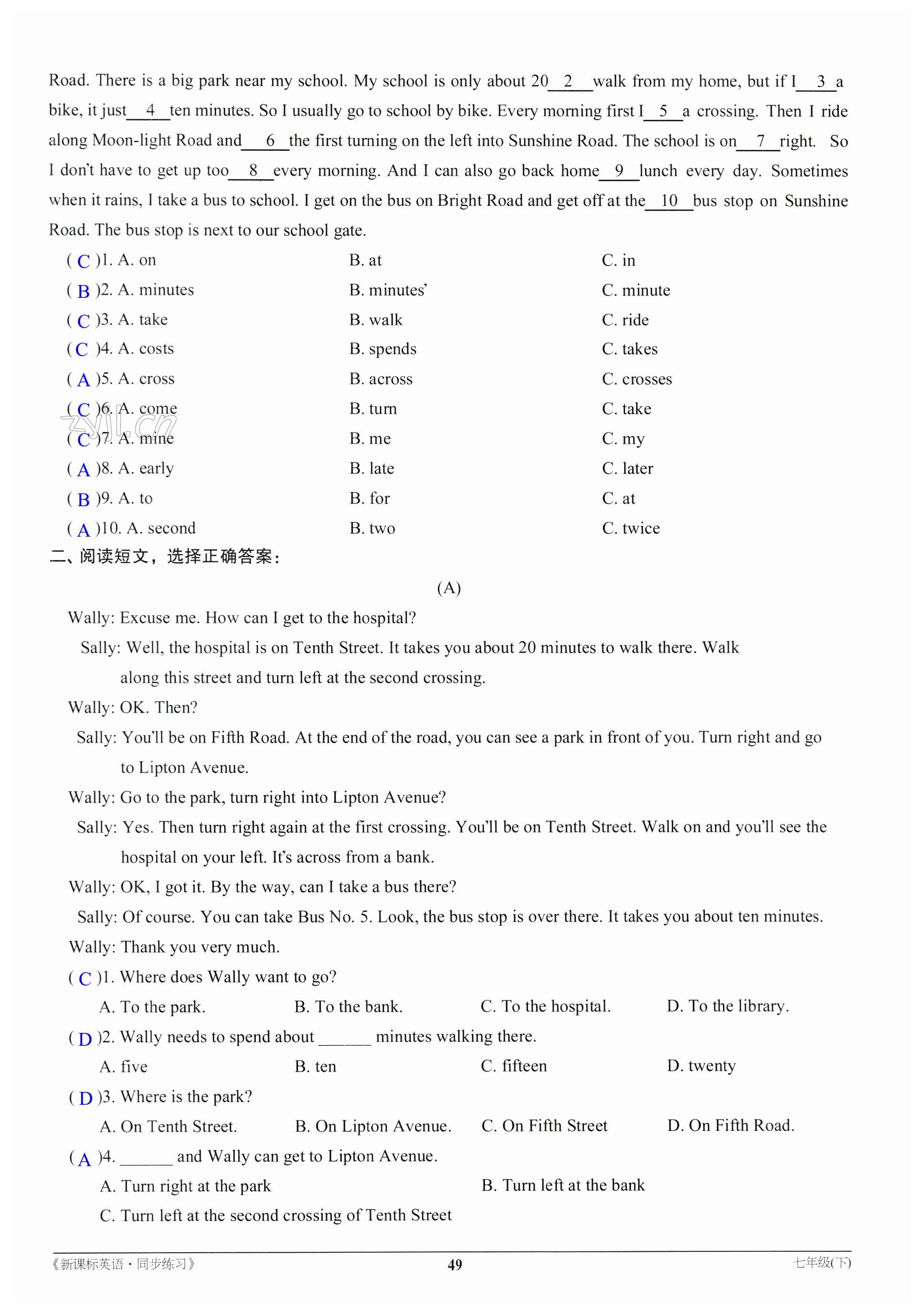 注:目前有些书本章节名称可能整理的还不是很完善,但都是按照顺序排列的,请同学们按照顺序仔细查找。练习册 2023年新课标同步练习七年级英语下册仁爱版 答案主要是用来给同学们做完题方便对答案用的,请勿直接抄袭。