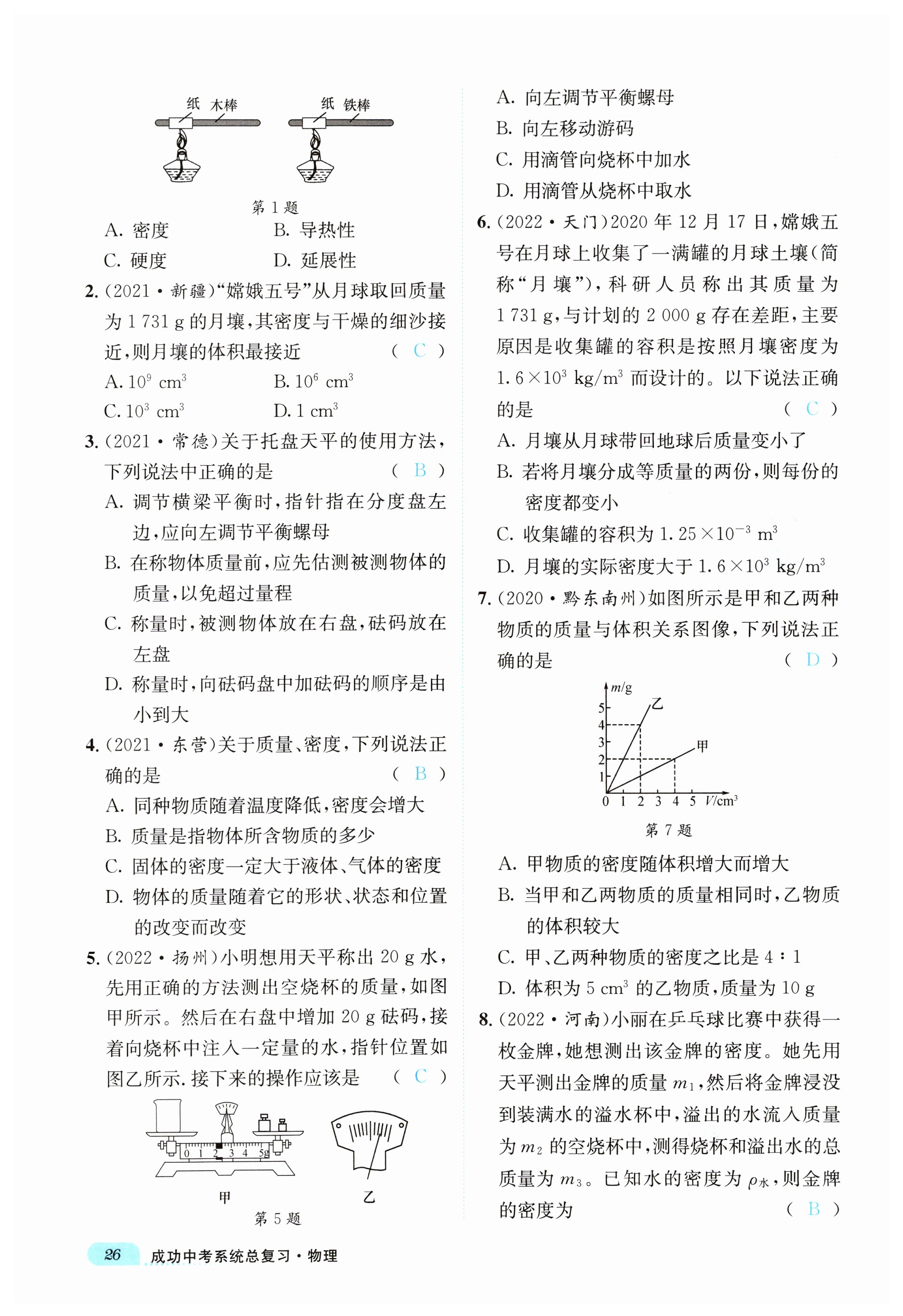 注:目前有些书本章节名称可能整理的还不是很完善,但都是按照顺序排列的,请同学们按照顺序仔细查找。练习册 2023年成功中考系统总复习物理人教版 答案主要是用来给同学们做完题方便对答案用的,请勿直接抄袭。