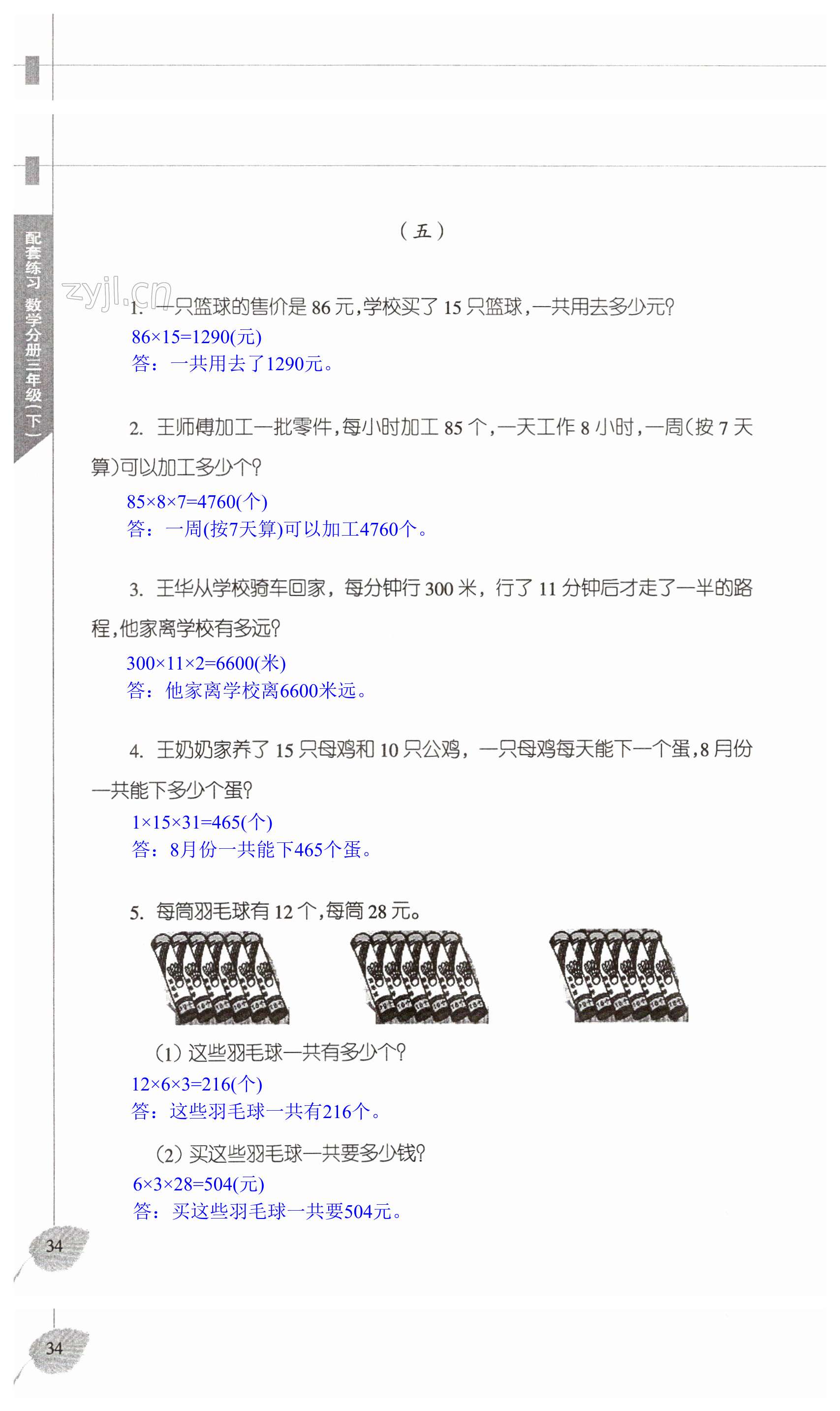 注:目前有些书本章节名称可能整理的还不是很完善,但都是按照顺序排列的,请同学们按照顺序仔细查找。练习册 2023年配套练习三年级数学下册 答案主要是用来给同学们做完题方便对答案用的,请勿直接抄袭。