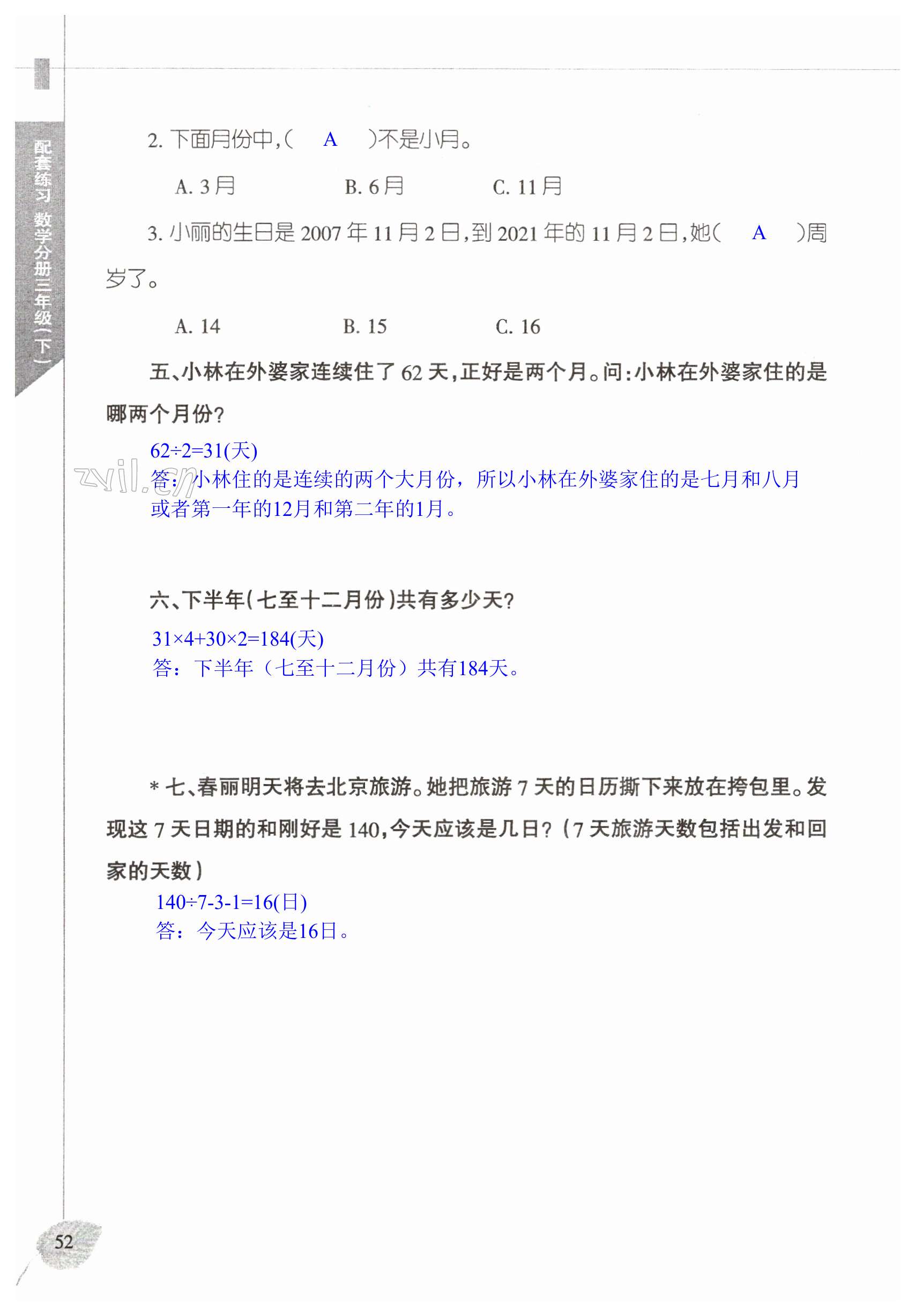 注:目前有些书本章节名称可能整理的还不是很完善,但都是按照顺序排列的,请同学们按照顺序仔细查找。练习册 2023年配套练习三年级数学下册 答案主要是用来给同学们做完题方便对答案用的,请勿直接抄袭。