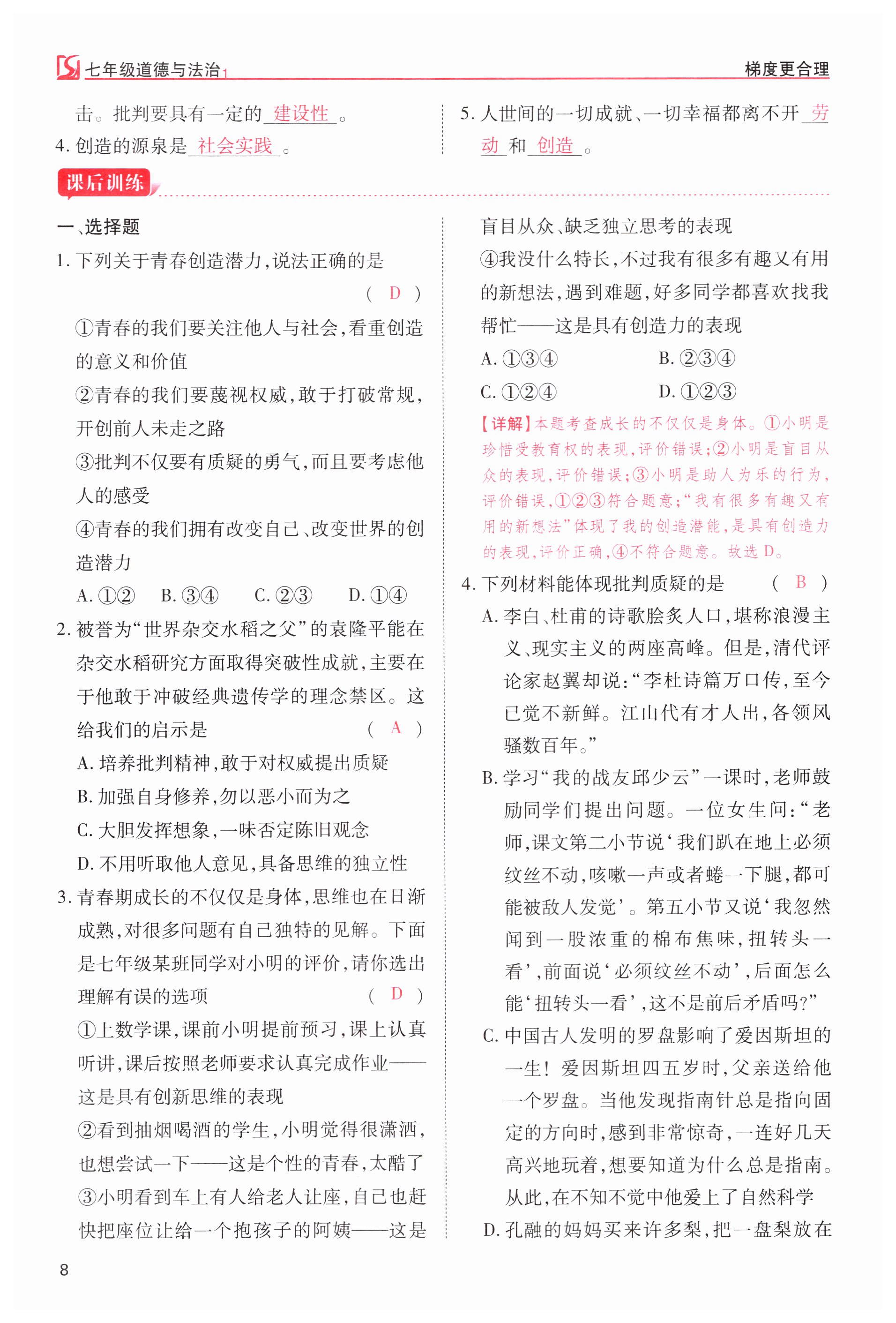 注:目前有些书本章节名称可能整理的还不是很完善,但都是按照顺序排列的,请同学们按照顺序仔细查找。练习册 2023年畅行课堂七年级道德与法治下册人教版山西专版 答案主要是用来给同学们做完题方便对答案用的,请勿直接抄袭。
