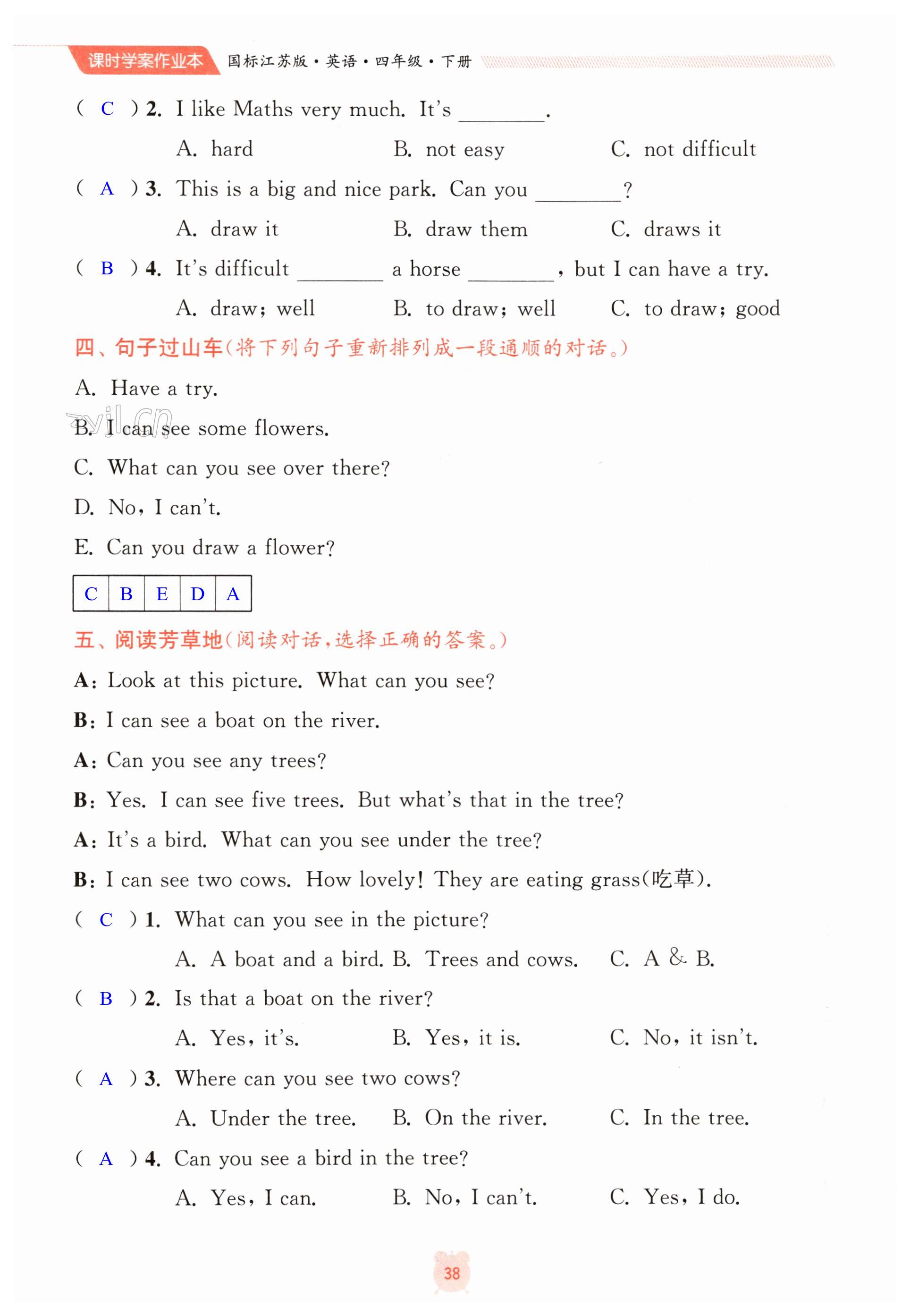 注:目前有些书本章节名称可能整理的还不是很完善,但都是按照顺序排列的,请同学们按照顺序仔细查找。练习册 2023年金钥匙课时学案作业本四年级英语下册国标江苏版 答案主要是用来给同学们做完题方便对答案用的,请勿直接抄袭。