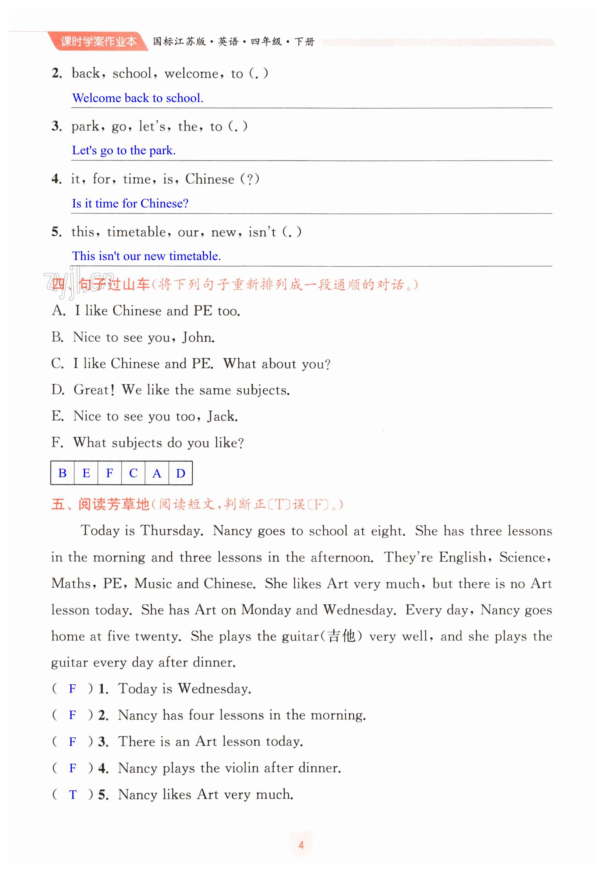 注:目前有些书本章节名称可能整理的还不是很完善,但都是按照顺序排列的,请同学们按照顺序仔细查找。练习册 2023年金钥匙课时学案作业本四年级英语下册国标江苏版 答案主要是用来给同学们做完题方便对答案用的,请勿直接抄袭。
