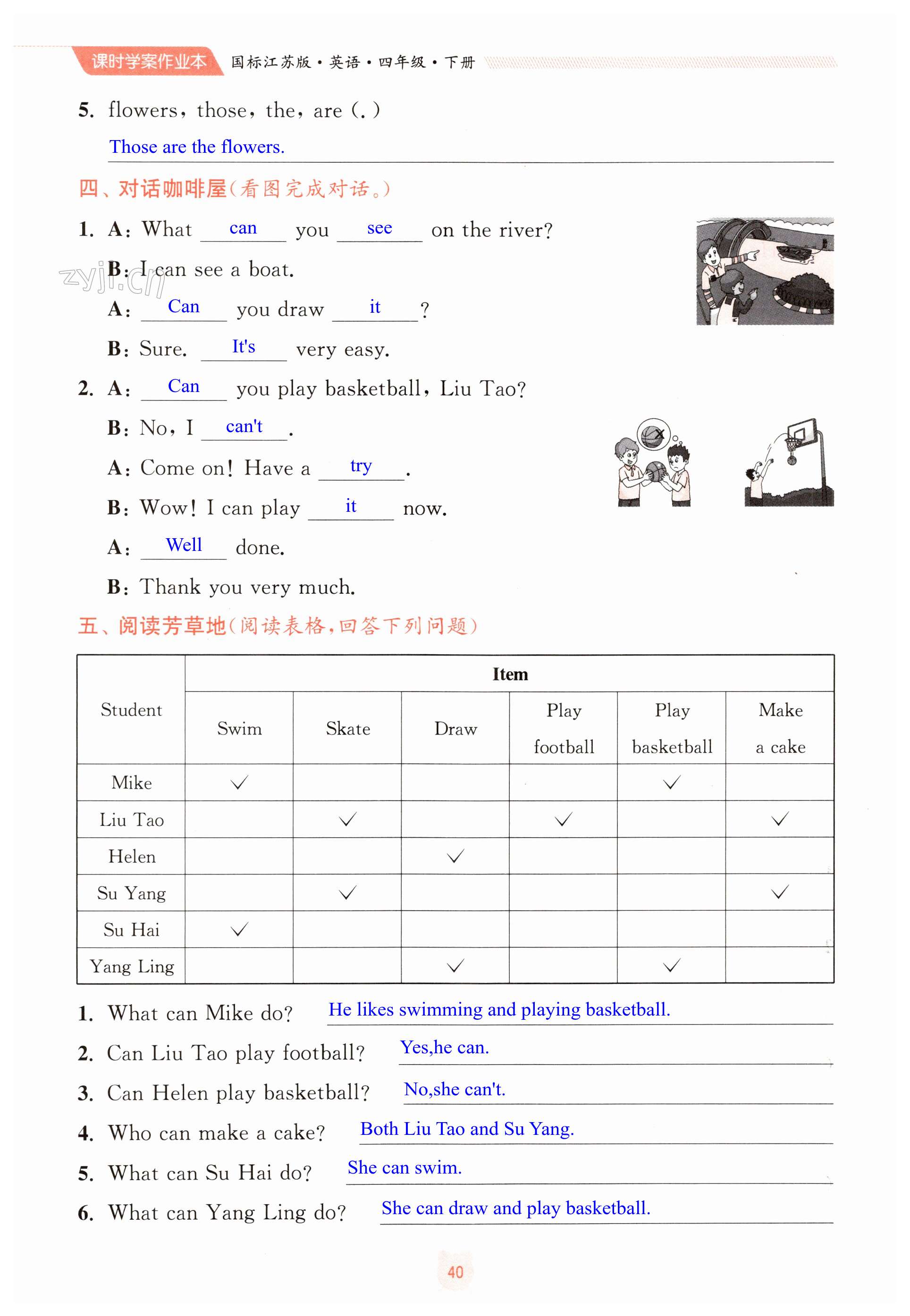 注:目前有些书本章节名称可能整理的还不是很完善,但都是按照顺序排列的,请同学们按照顺序仔细查找。练习册 2023年金钥匙课时学案作业本四年级英语下册国标江苏版 答案主要是用来给同学们做完题方便对答案用的,请勿直接抄袭。