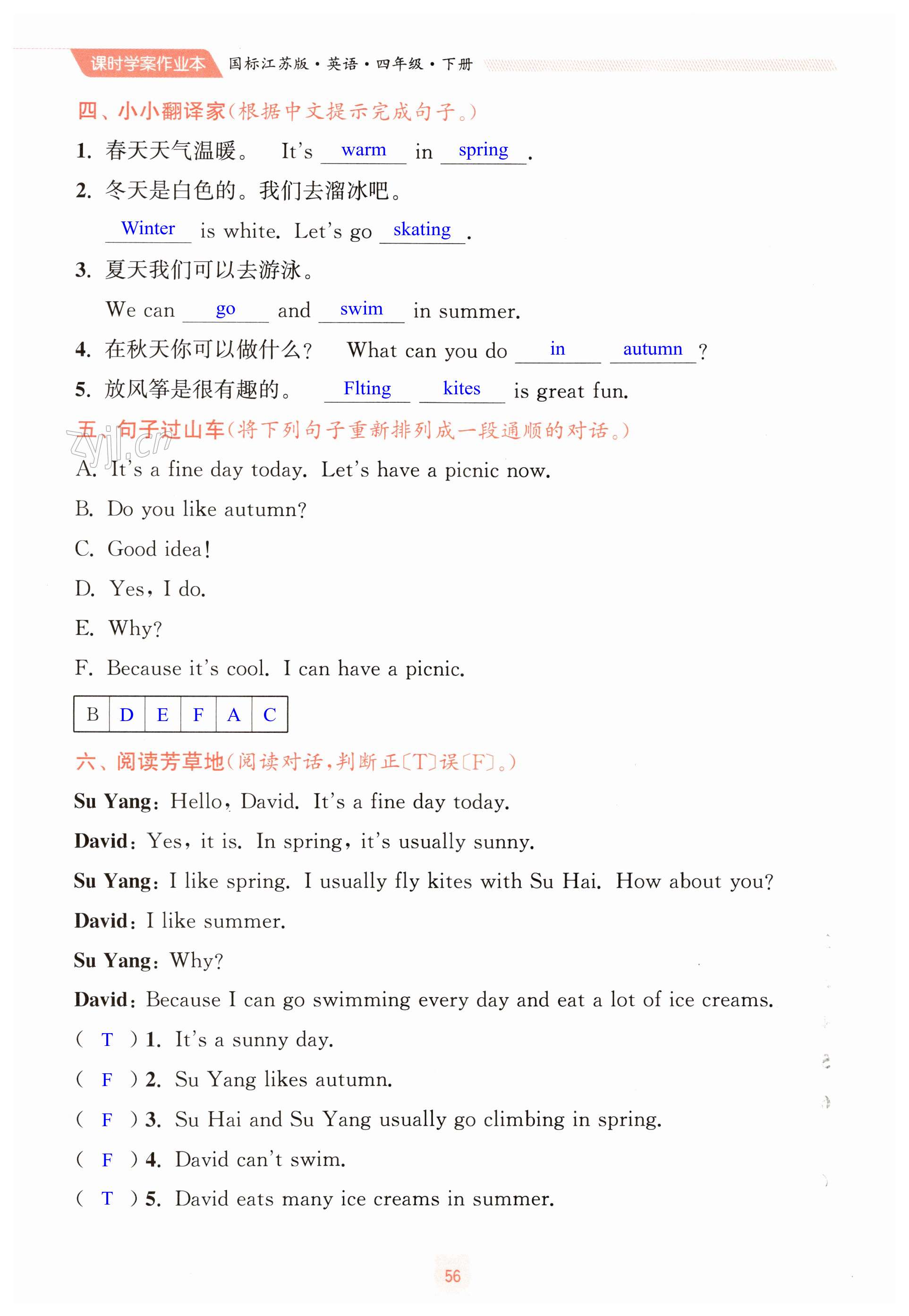 注:目前有些书本章节名称可能整理的还不是很完善,但都是按照顺序排列的,请同学们按照顺序仔细查找。练习册 2023年金钥匙课时学案作业本四年级英语下册国标江苏版 答案主要是用来给同学们做完题方便对答案用的,请勿直接抄袭。