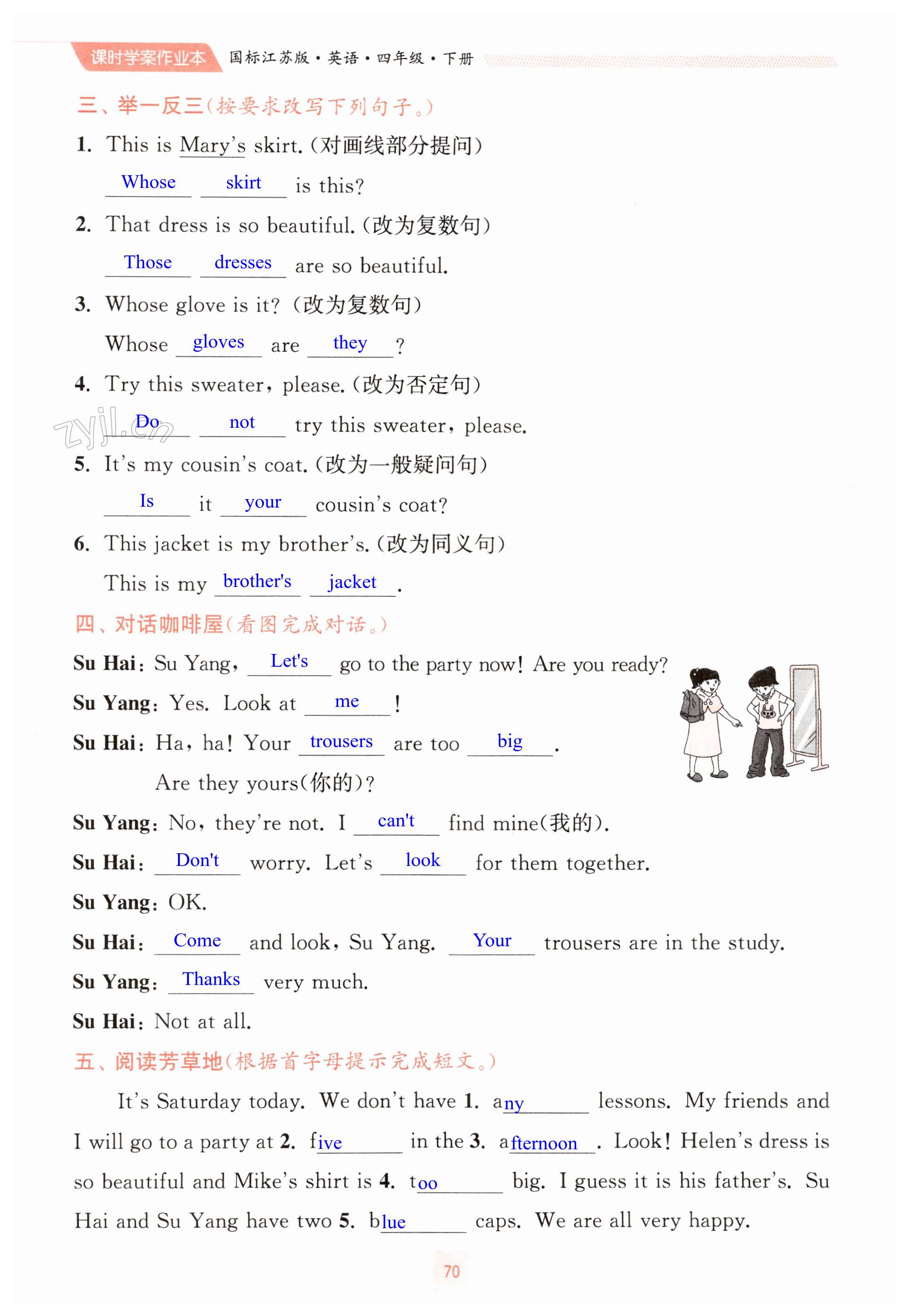 注:目前有些书本章节名称可能整理的还不是很完善,但都是按照顺序排列的,请同学们按照顺序仔细查找。练习册 2023年金钥匙课时学案作业本四年级英语下册国标江苏版 答案主要是用来给同学们做完题方便对答案用的,请勿直接抄袭。