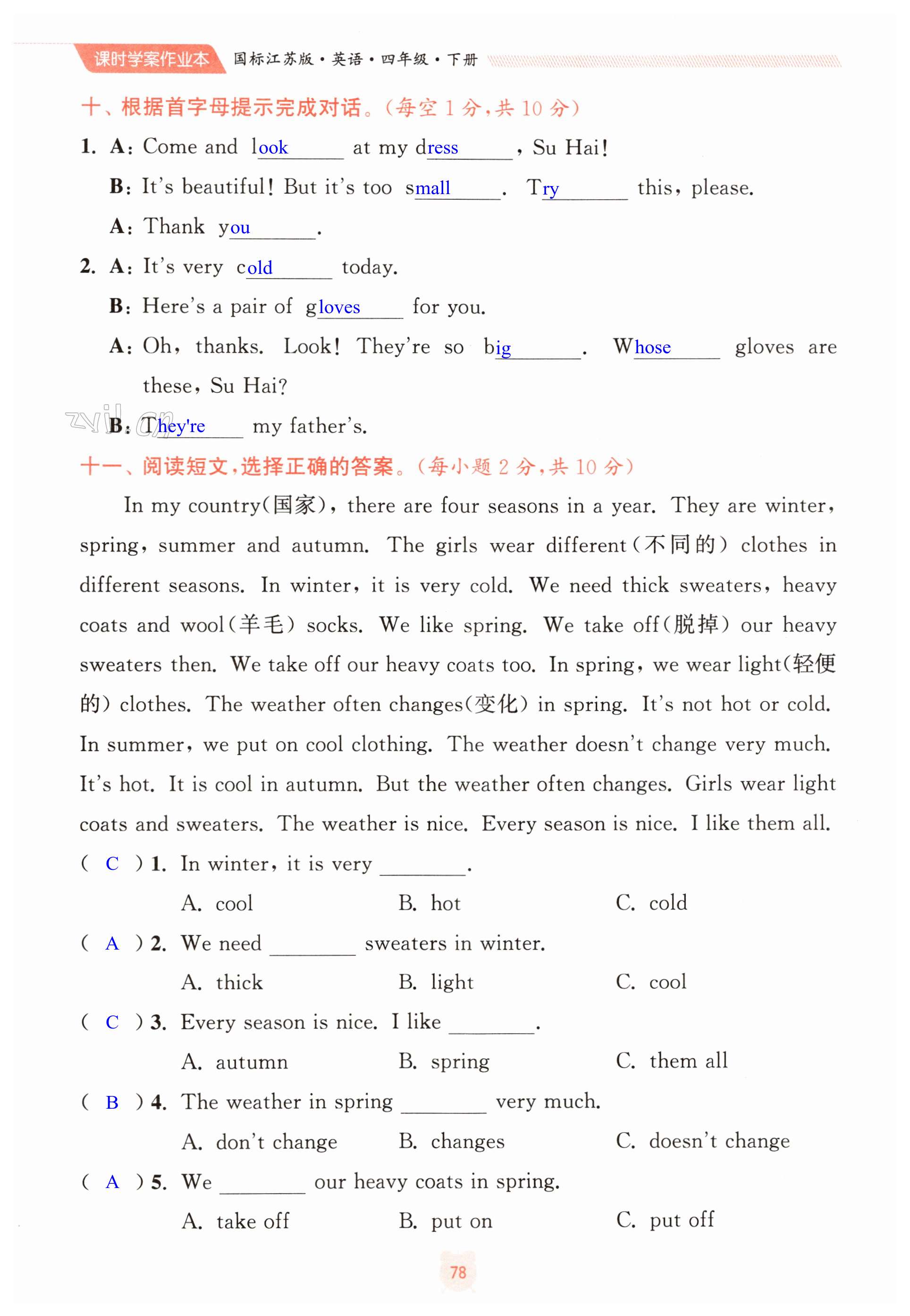 注:目前有些书本章节名称可能整理的还不是很完善,但都是按照顺序排列的,请同学们按照顺序仔细查找。练习册 2023年金钥匙课时学案作业本四年级英语下册国标江苏版 答案主要是用来给同学们做完题方便对答案用的,请勿直接抄袭。