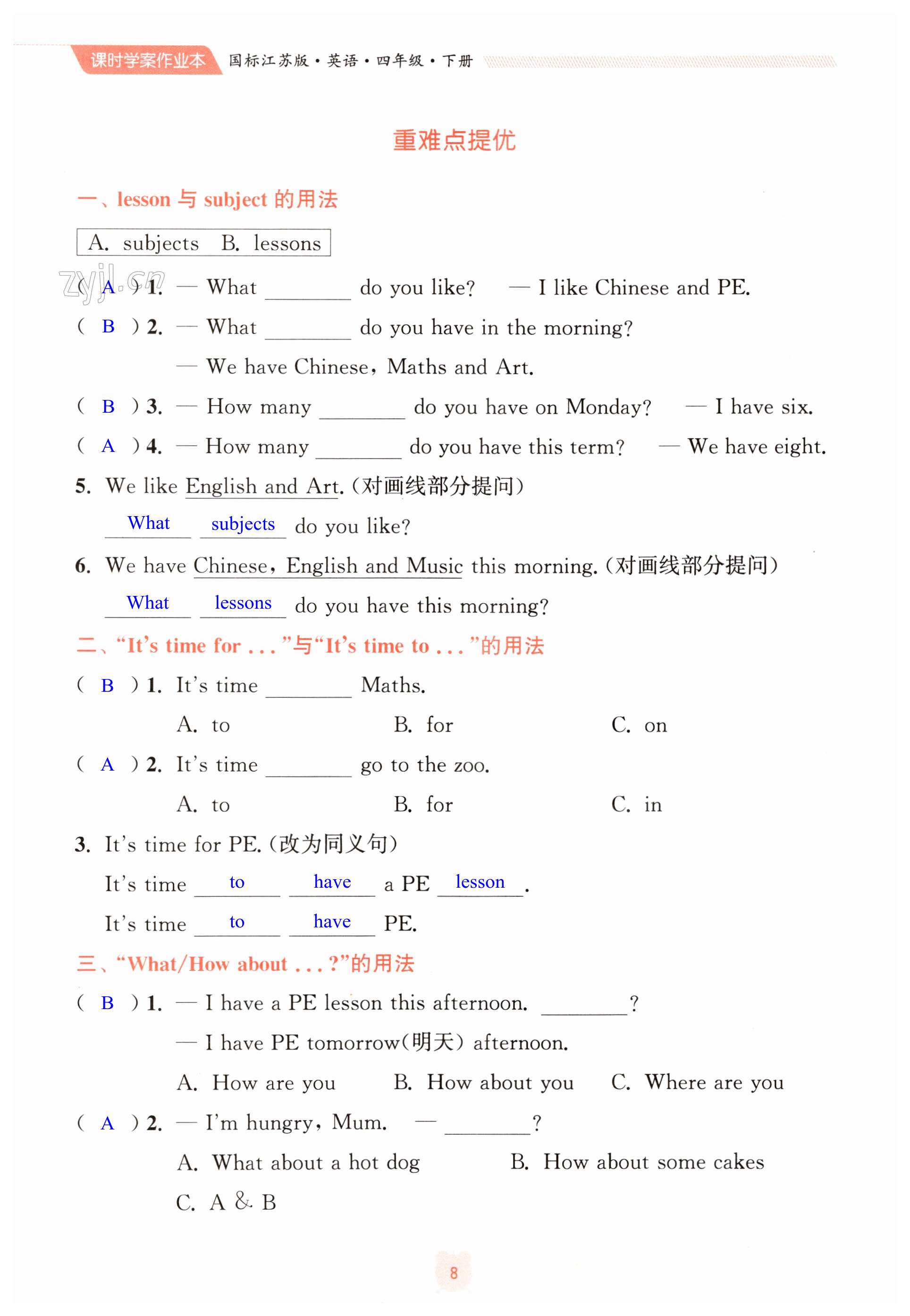 注:目前有些书本章节名称可能整理的还不是很完善,但都是按照顺序排列的,请同学们按照顺序仔细查找。练习册 2023年金钥匙课时学案作业本四年级英语下册国标江苏版 答案主要是用来给同学们做完题方便对答案用的,请勿直接抄袭。
