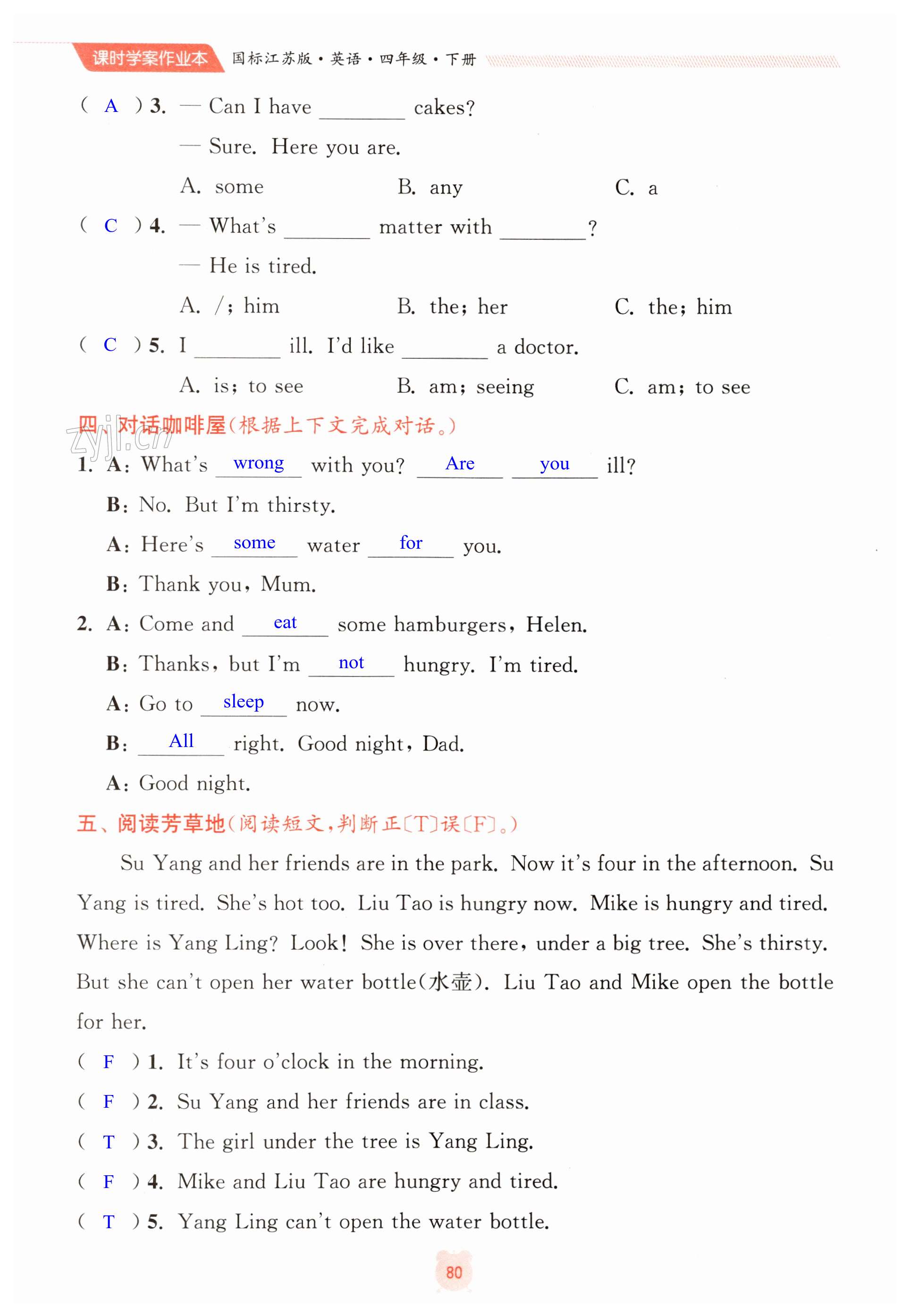 注:目前有些书本章节名称可能整理的还不是很完善,但都是按照顺序排列的,请同学们按照顺序仔细查找。练习册 2023年金钥匙课时学案作业本四年级英语下册国标江苏版 答案主要是用来给同学们做完题方便对答案用的,请勿直接抄袭。