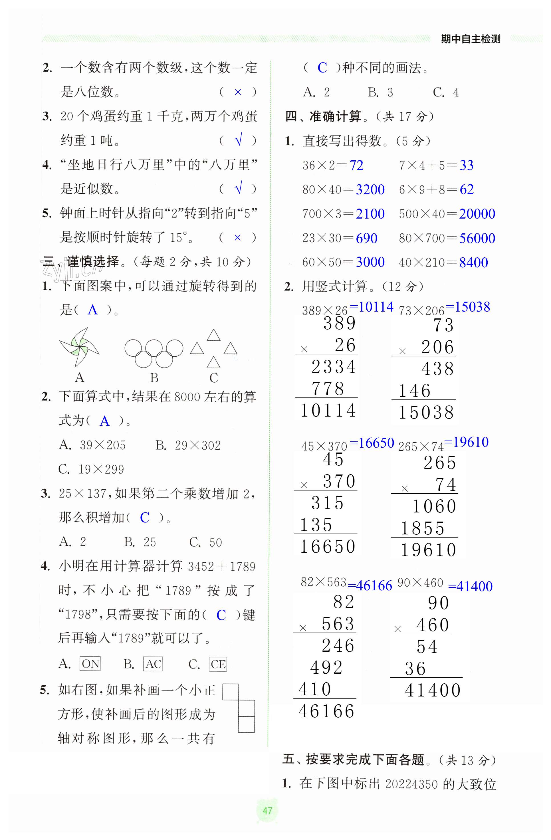 注:目前有些书本章节名称可能整理的还不是很完善,但都是按照顺序排列的,请同学们按照顺序仔细查找。练习册 2023年金钥匙课时学案作业本四年级数学下册江苏版 答案主要是用来给同学们做完题方便对答案用的,请勿直接抄袭。