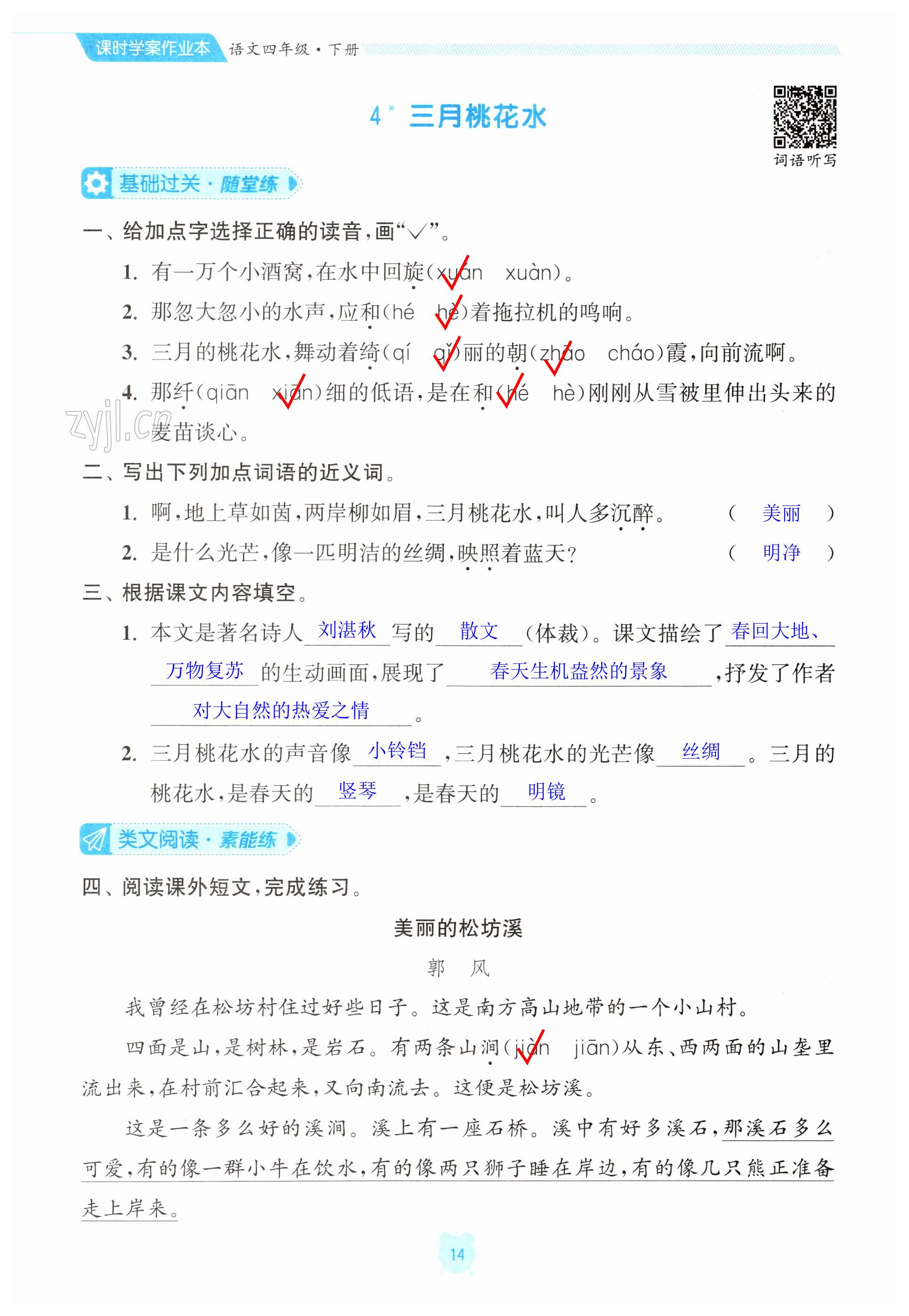 2023年金钥匙课时学案作业本四年级语文下册人教版