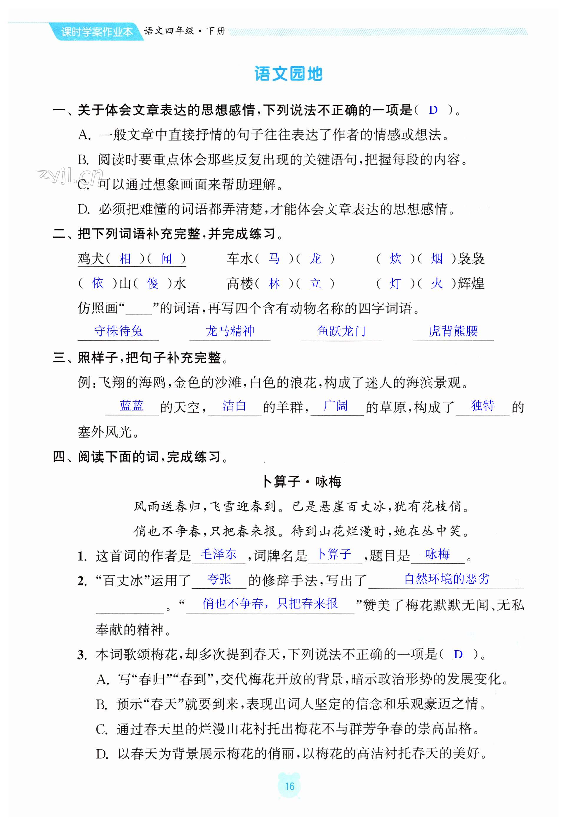 注:目前有些书本章节名称可能整理的还不是很完善,但都是按照顺序排列的,请同学们按照顺序仔细查找。练习册 2023年金钥匙课时学案作业本四年级语文下册人教版 答案主要是用来给同学们做完题方便对答案用的,请勿直接抄袭。