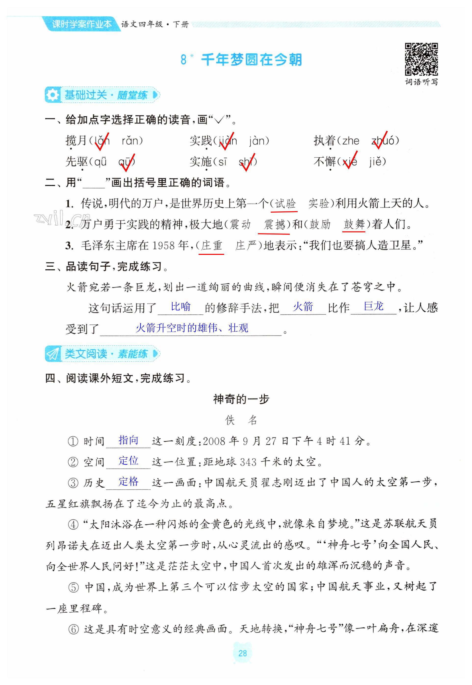 2023年金钥匙课时学案作业本四年级语文下册人教版