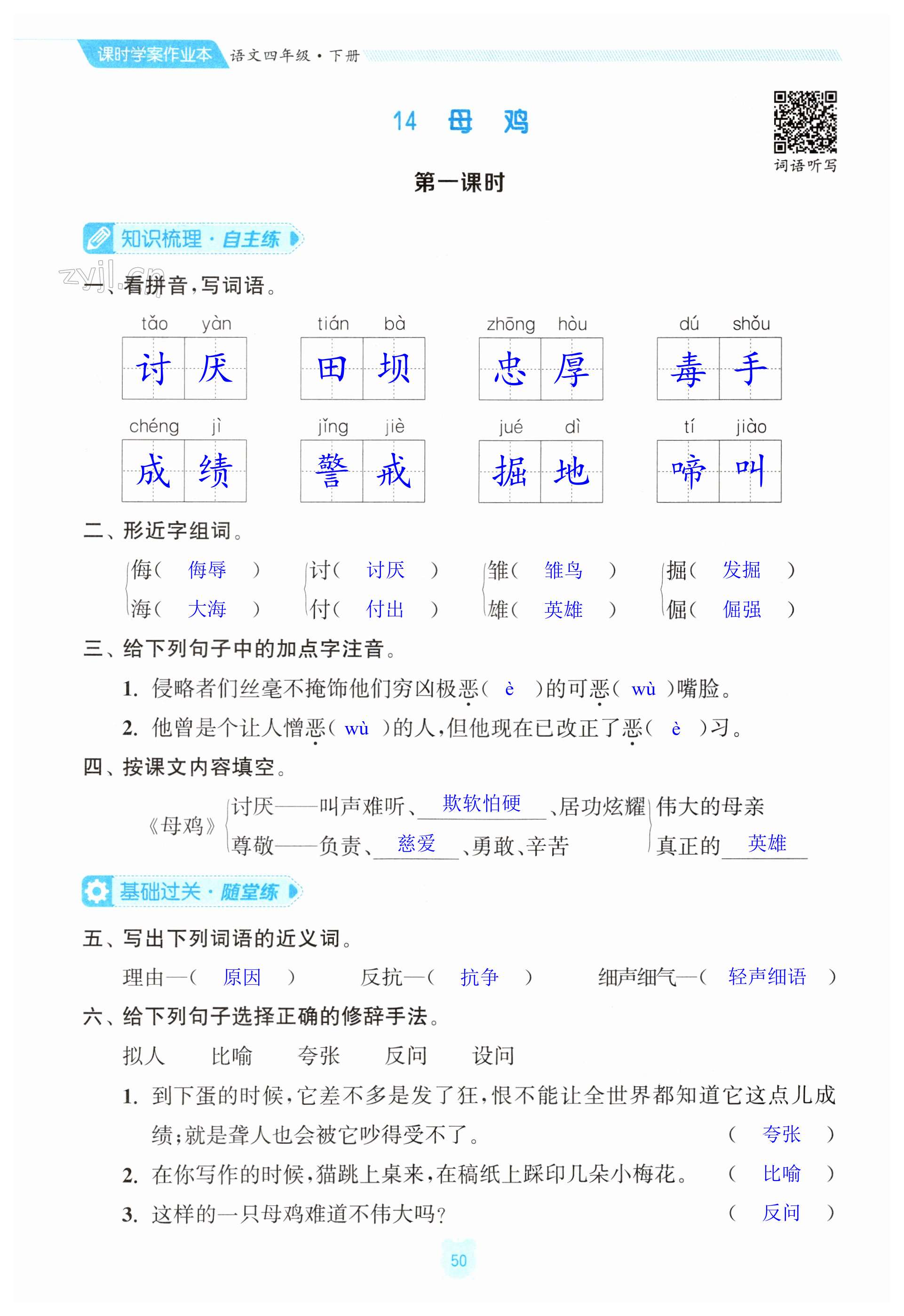 2023年金钥匙课时学案作业本四年级语文下册人教版