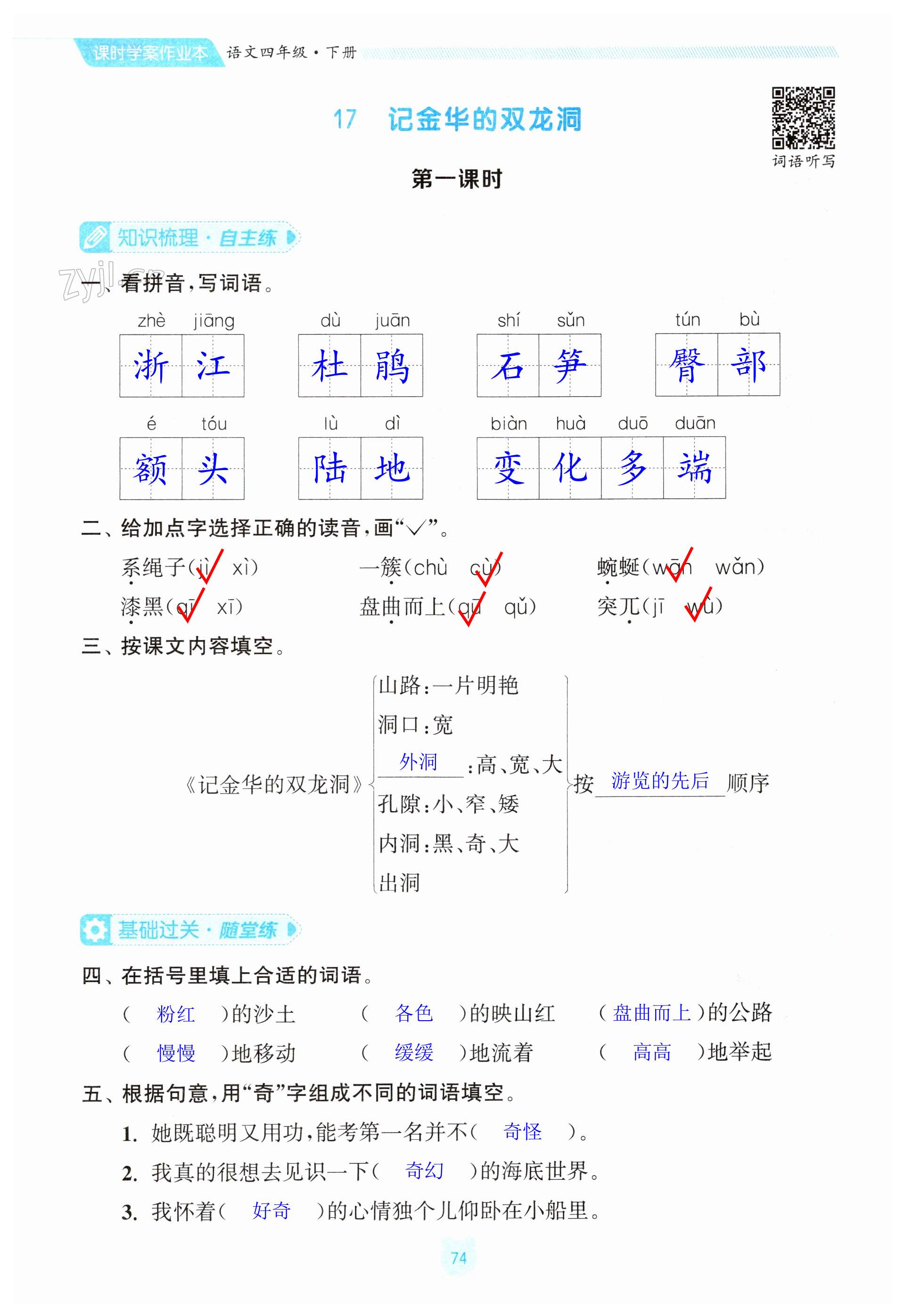 2023年金钥匙课时学案作业本四年级语文下册人教版