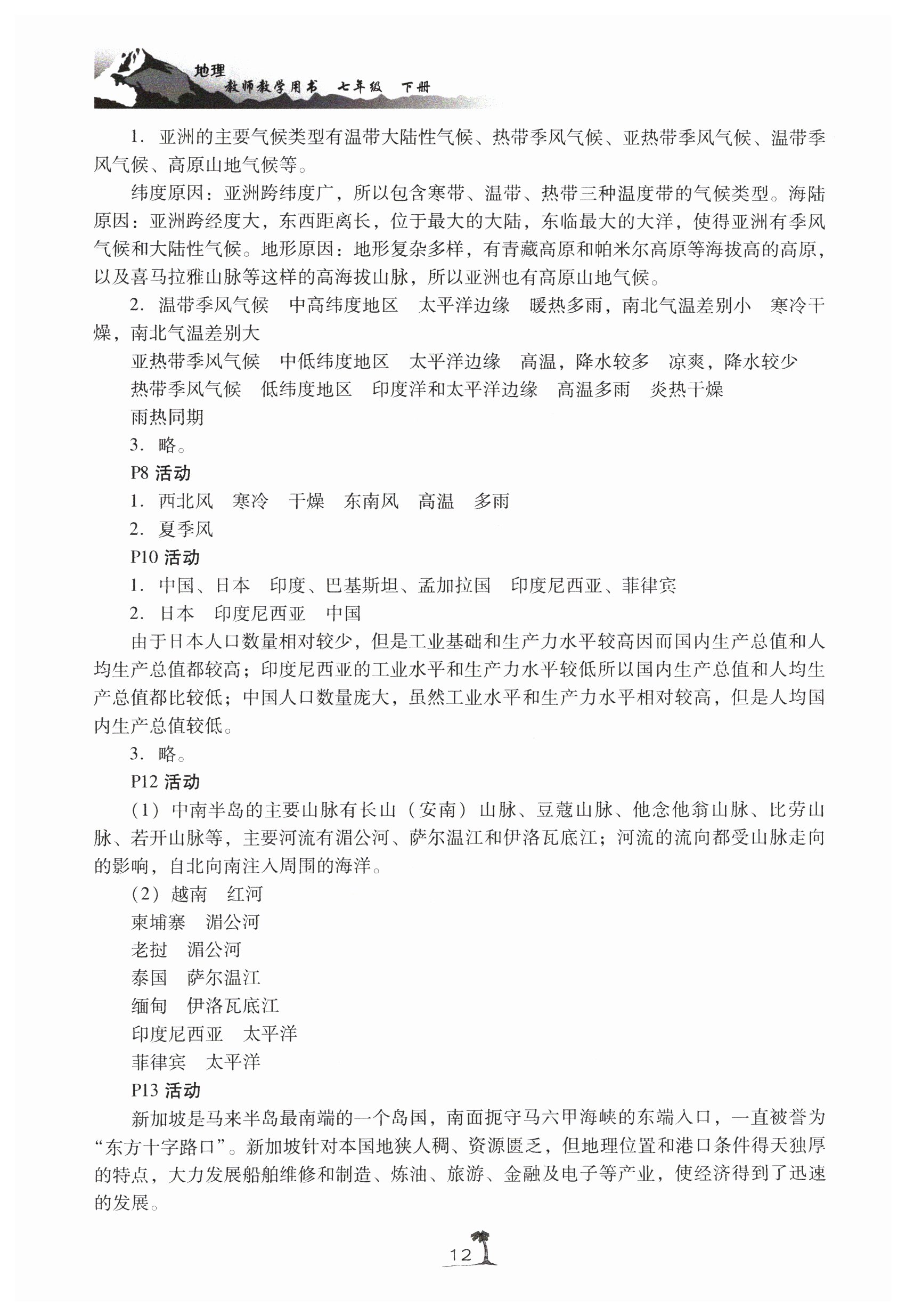 注:目前有些书本章节名称可能整理的还不是很完善,但都是按照顺序排列的,请同学们按照顺序仔细查找。练习册 2023年教材课本七年级地理下册粤人版 答案主要是用来给同学们做完题方便对答案用的,请勿直接抄袭。