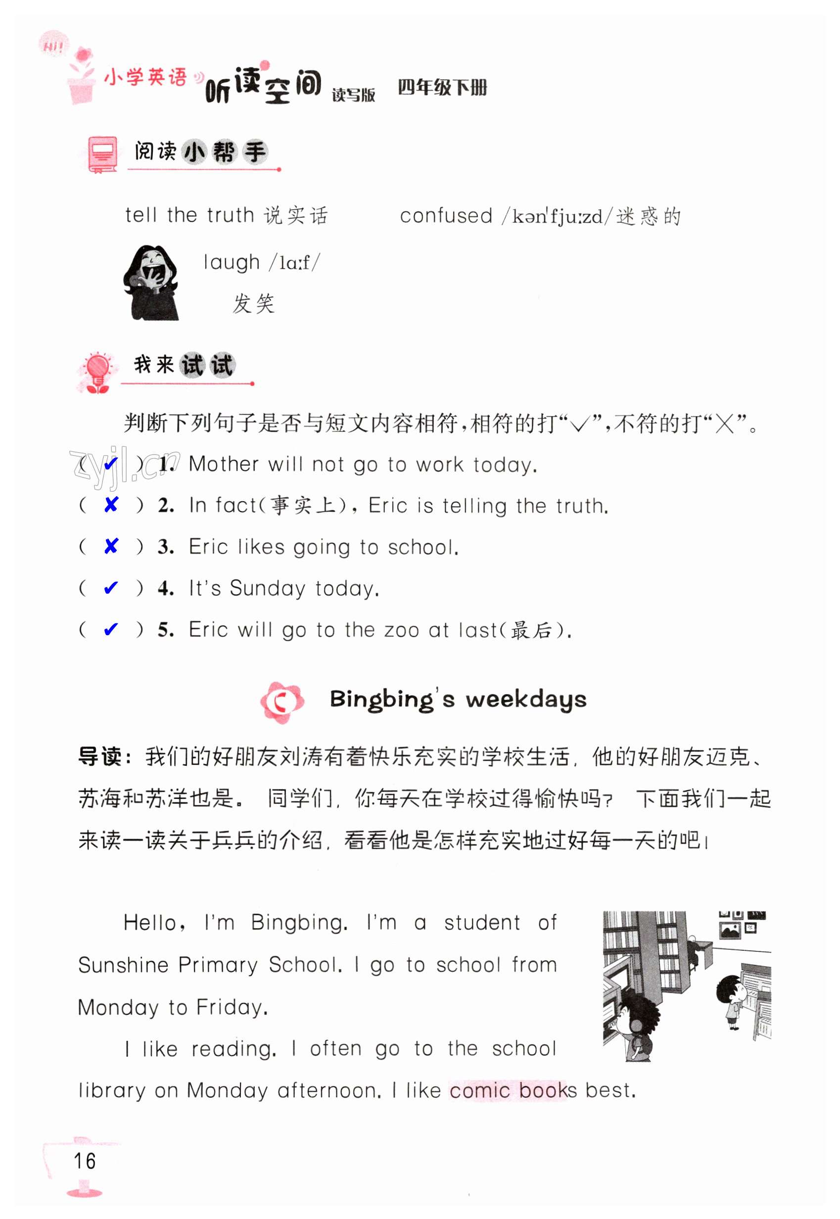 注:目前有些书本章节名称可能整理的还不是很完善,但都是按照顺序排列的,请同学们按照顺序仔细查找。练习册 2023年英语听读空间四年级下册读写版 答案主要是用来给同学们做完题方便对答案用的,请勿直接抄袭。