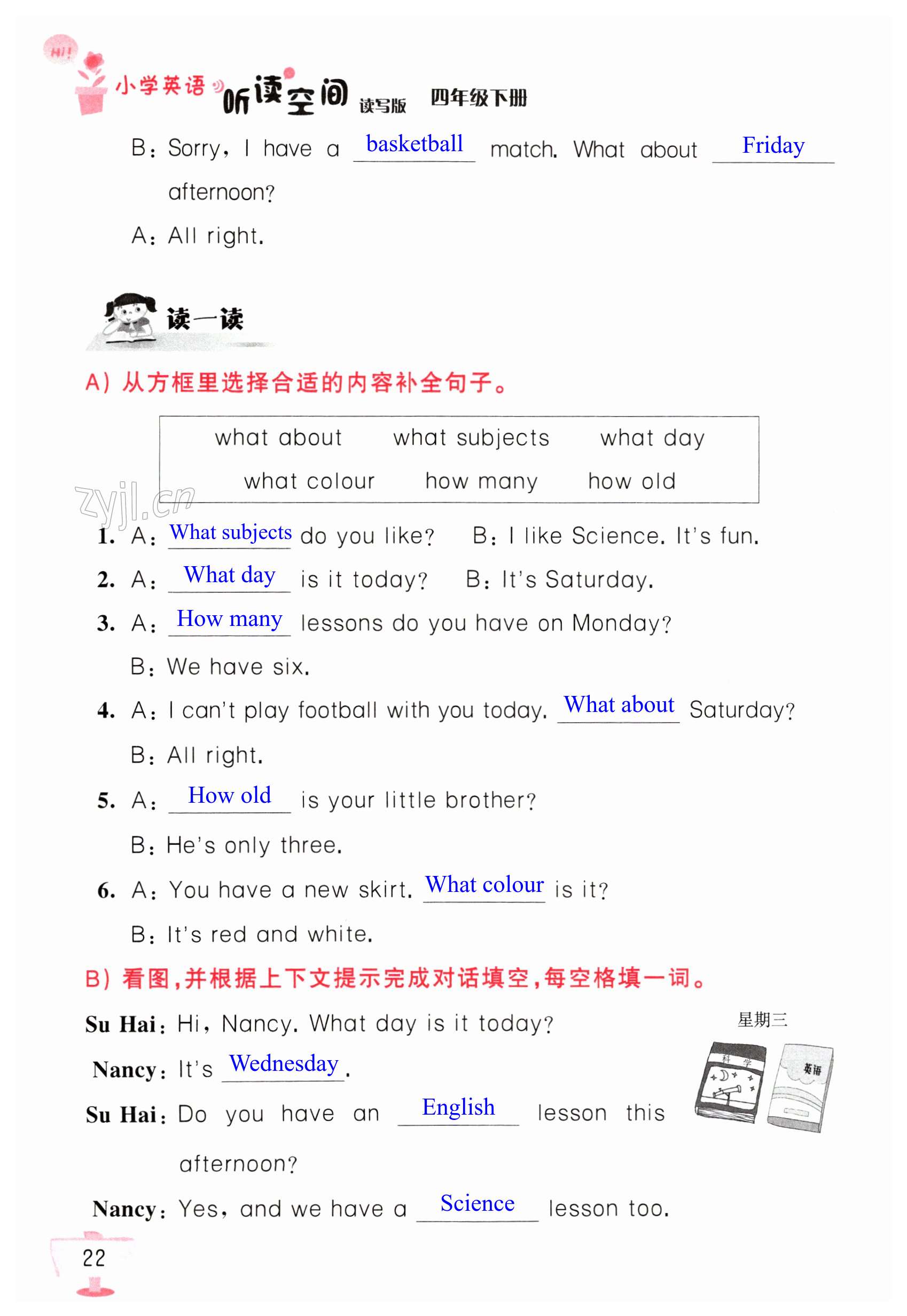 注:目前有些书本章节名称可能整理的还不是很完善,但都是按照顺序排列的,请同学们按照顺序仔细查找。练习册 2023年英语听读空间四年级下册读写版 答案主要是用来给同学们做完题方便对答案用的,请勿直接抄袭。