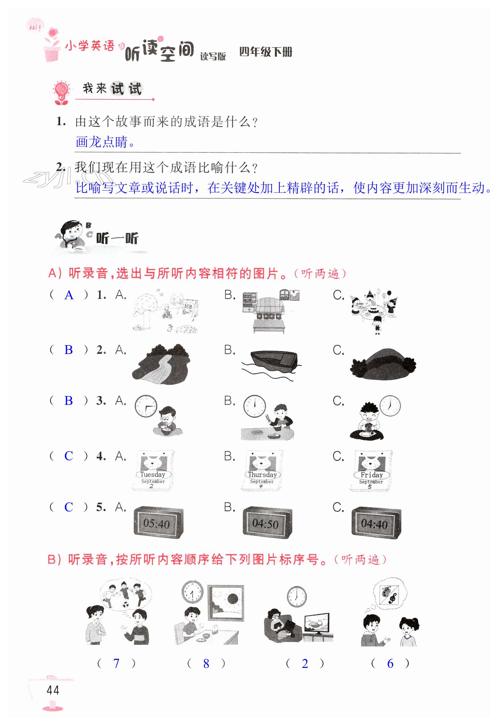 注:目前有些书本章节名称可能整理的还不是很完善,但都是按照顺序排列的,请同学们按照顺序仔细查找。练习册 2023年英语听读空间四年级下册读写版 答案主要是用来给同学们做完题方便对答案用的,请勿直接抄袭。