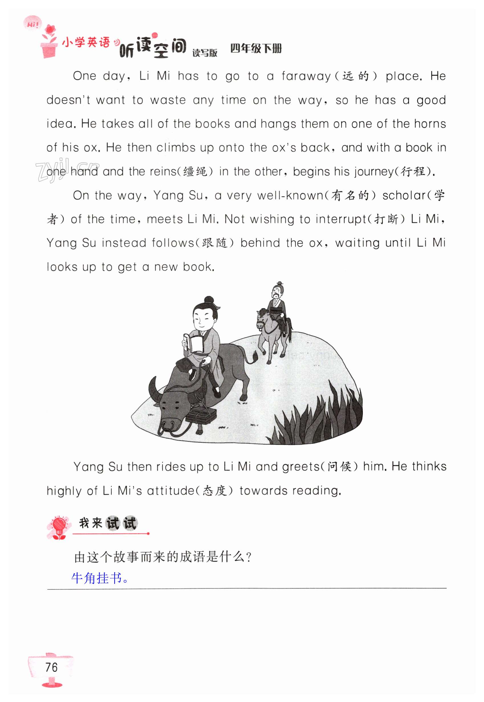 注:目前有些书本章节名称可能整理的还不是很完善,但都是按照顺序排列的,请同学们按照顺序仔细查找。练习册 2023年英语听读空间四年级下册读写版 答案主要是用来给同学们做完题方便对答案用的,请勿直接抄袭。