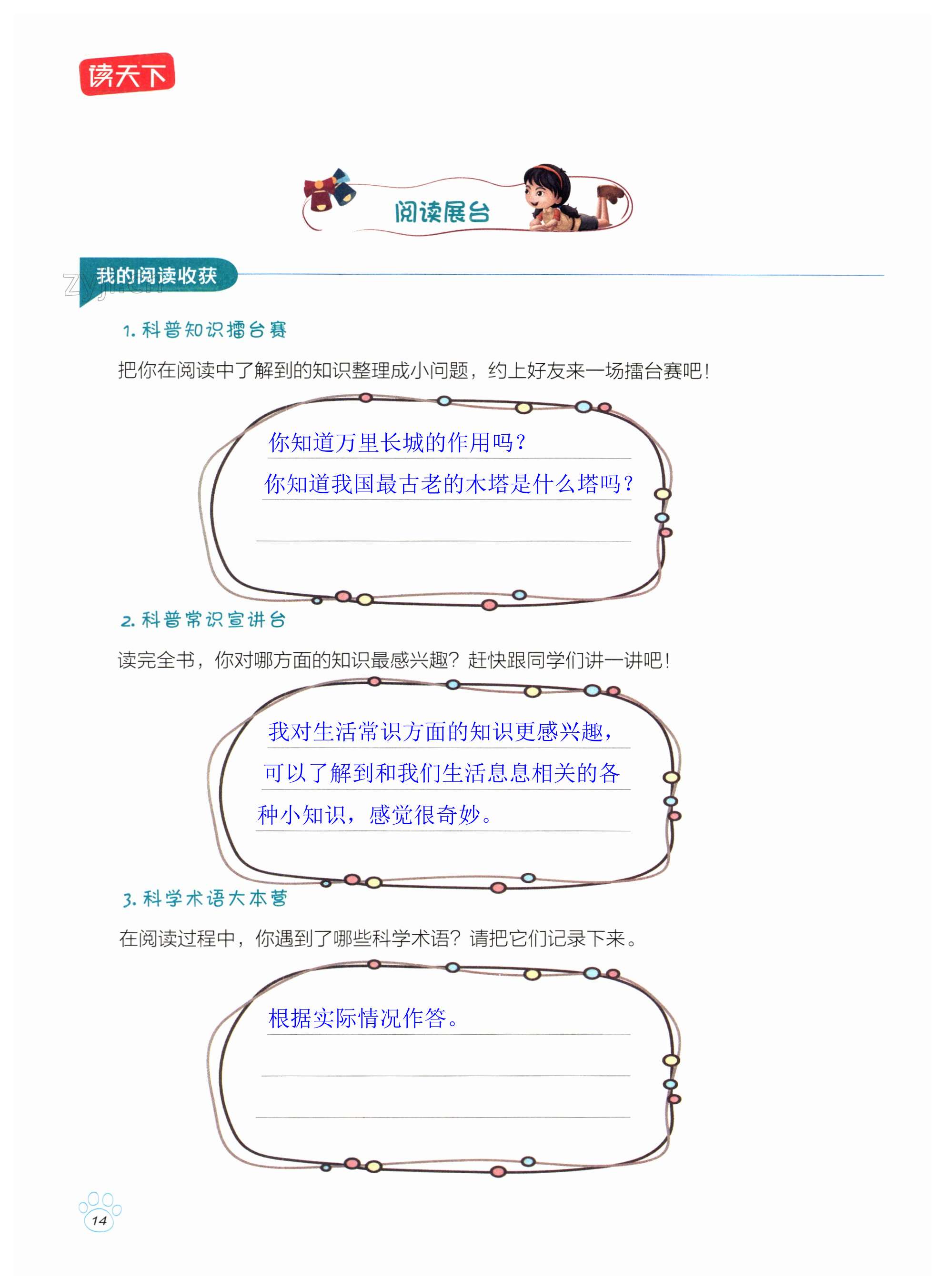 注:目前有些书本章节名称可能整理的还不是很完善,但都是按照顺序排列的,请同学们按照顺序仔细查找。练习册 2023年读天下四年级语文下册人教版 答案主要是用来给同学们做完题方便对答案用的,请勿直接抄袭。