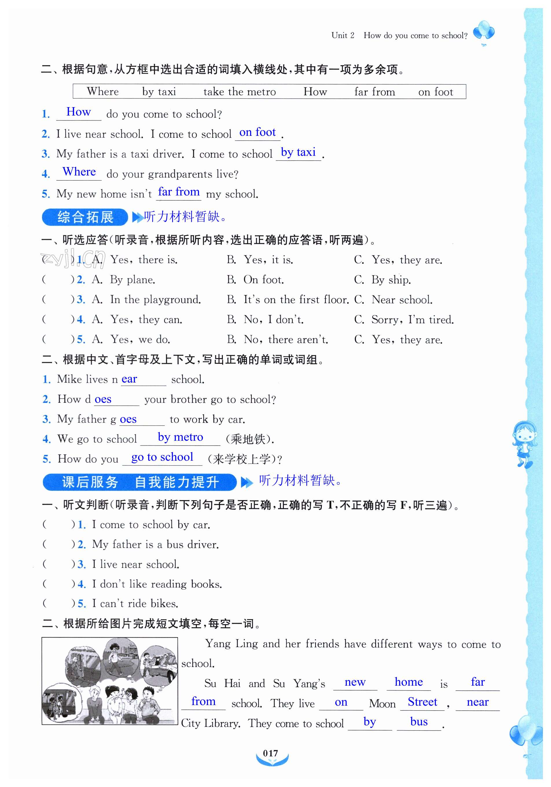 注:目前有些书本章节名称可能整理的还不是很完善,但都是按照顺序排列的,请同学们按照顺序仔细查找。练习册 2023年课后服务综合学习能力提升指南五年级英语下册人教版 答案主要是用来给同学们做完题方便对答案用的,请勿直接抄袭。