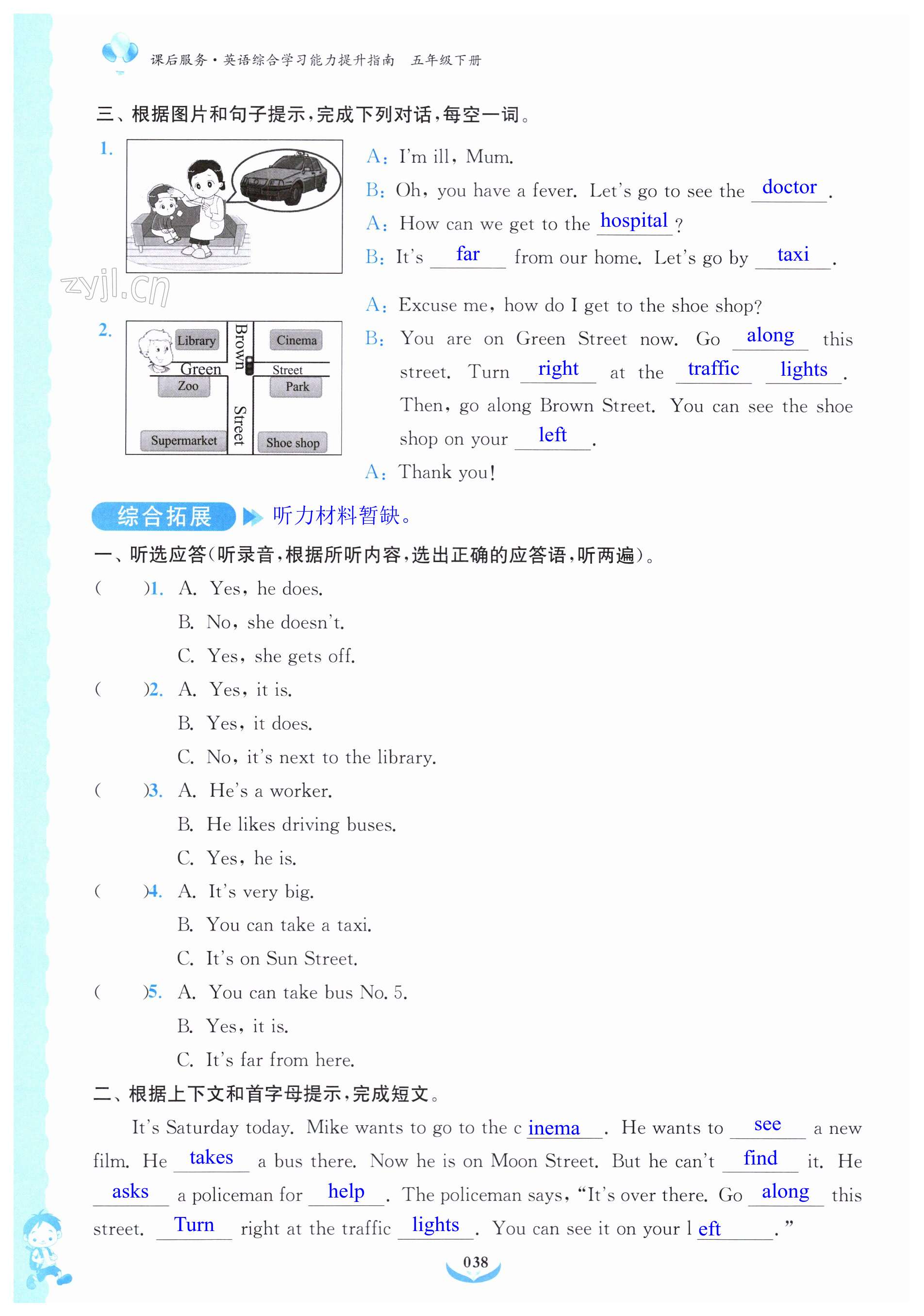 注:目前有些书本章节名称可能整理的还不是很完善,但都是按照顺序排列的,请同学们按照顺序仔细查找。练习册 2023年课后服务综合学习能力提升指南五年级英语下册人教版 答案主要是用来给同学们做完题方便对答案用的,请勿直接抄袭。