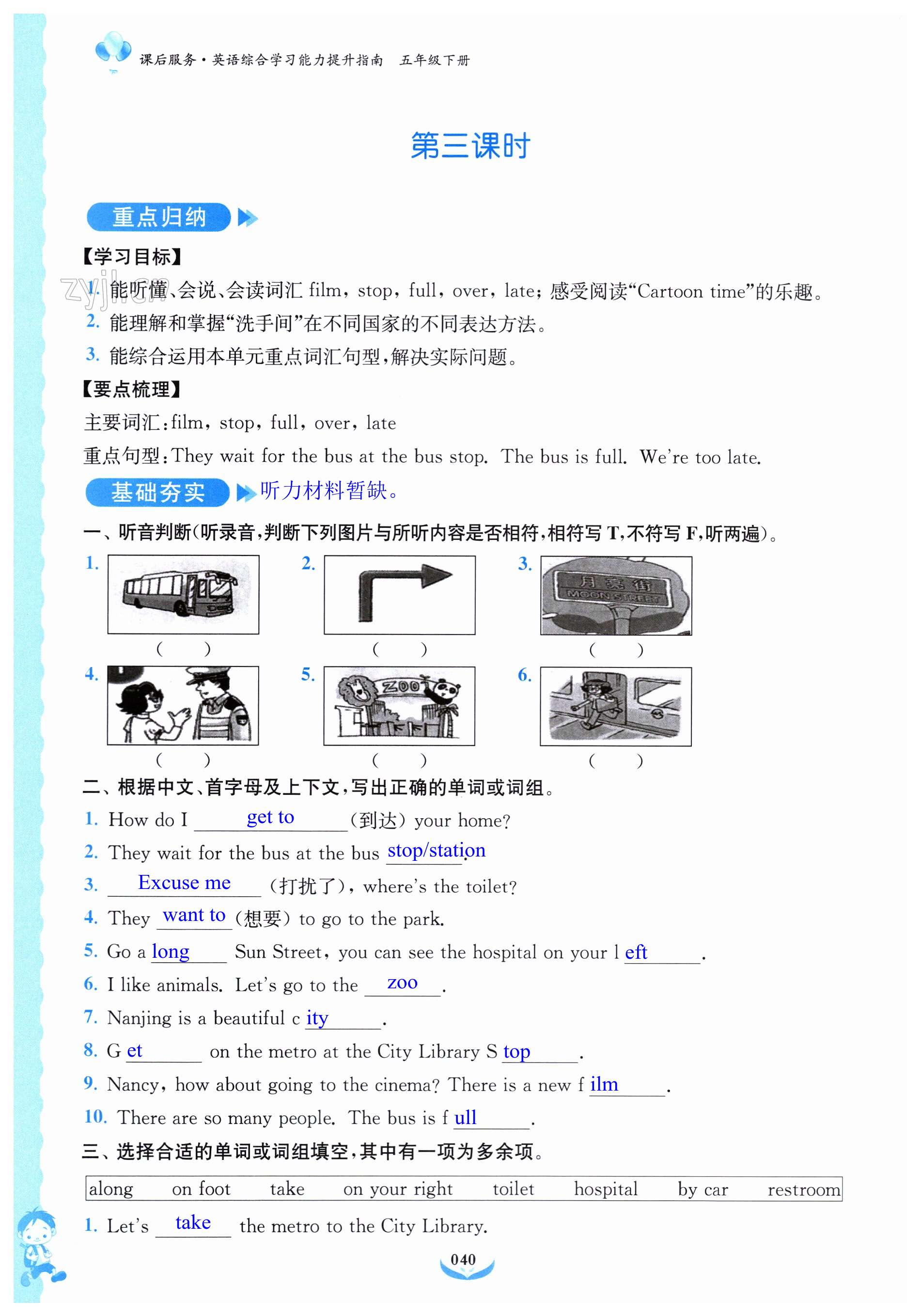 注:目前有些书本章节名称可能整理的还不是很完善,但都是按照顺序排列的,请同学们按照顺序仔细查找。练习册 2023年课后服务综合学习能力提升指南五年级英语下册人教版 答案主要是用来给同学们做完题方便对答案用的,请勿直接抄袭。