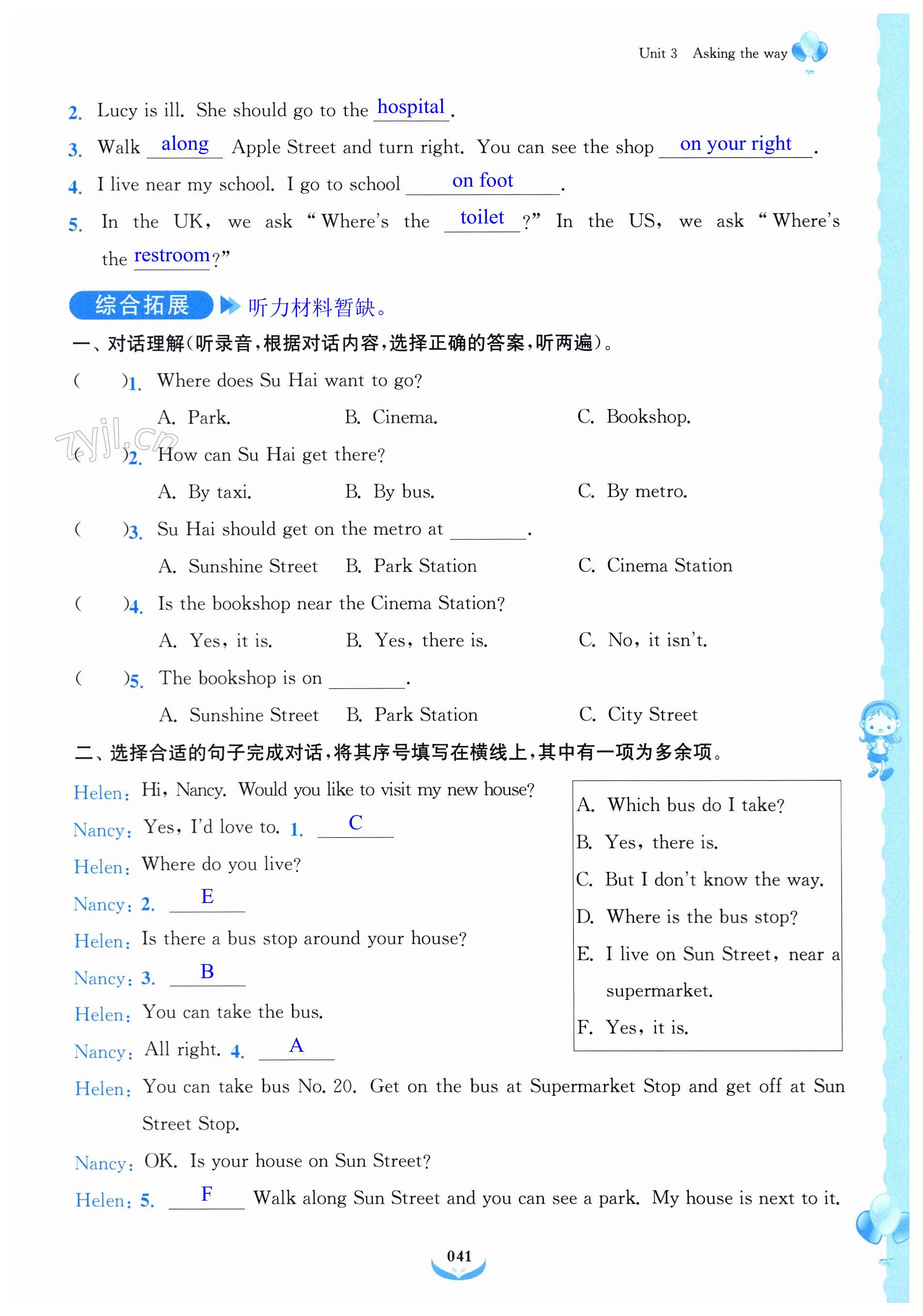 注:目前有些书本章节名称可能整理的还不是很完善,但都是按照顺序排列的,请同学们按照顺序仔细查找。练习册 2023年课后服务综合学习能力提升指南五年级英语下册人教版 答案主要是用来给同学们做完题方便对答案用的,请勿直接抄袭。