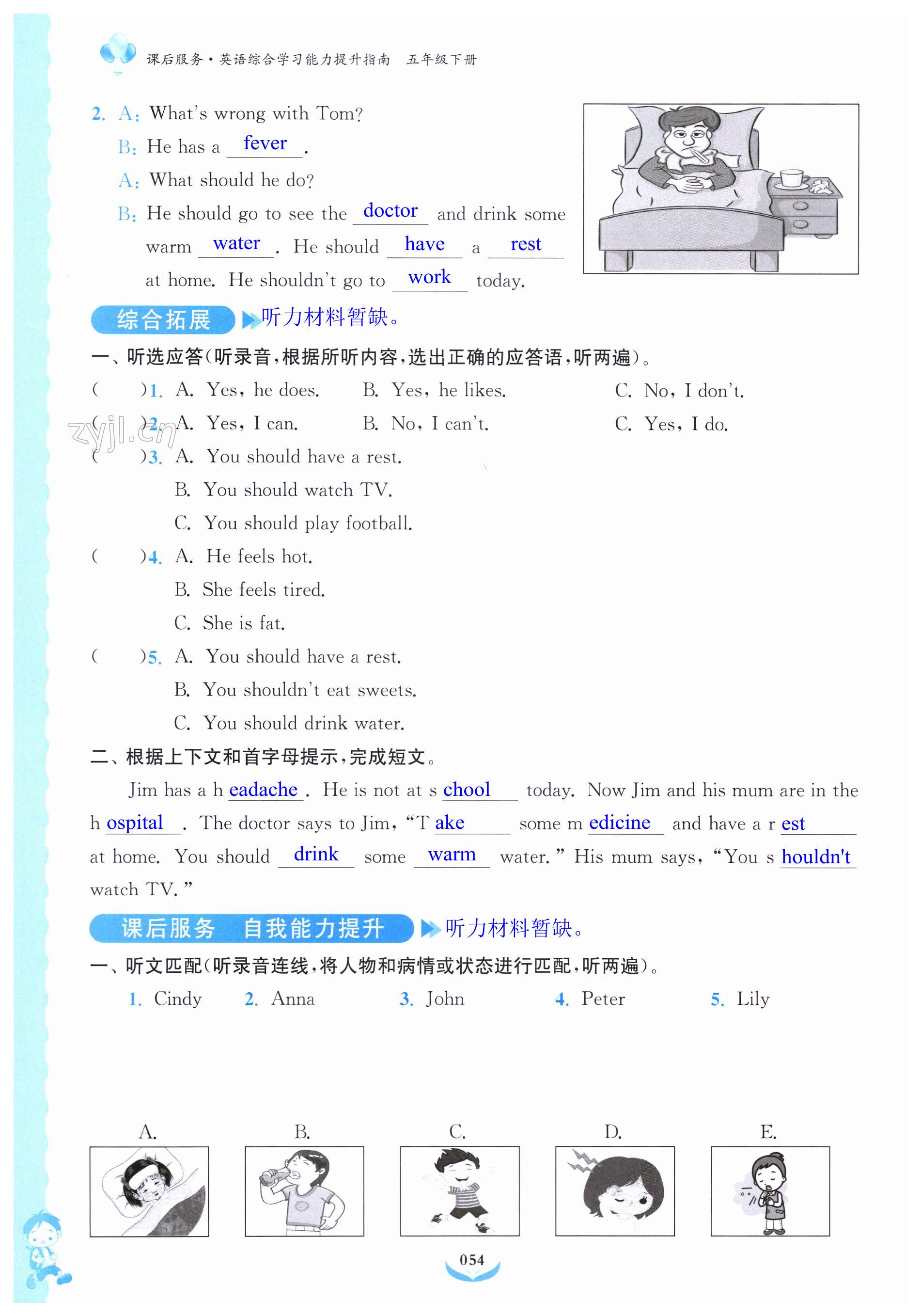 注:目前有些书本章节名称可能整理的还不是很完善,但都是按照顺序排列的,请同学们按照顺序仔细查找。练习册 2023年课后服务综合学习能力提升指南五年级英语下册人教版 答案主要是用来给同学们做完题方便对答案用的,请勿直接抄袭。