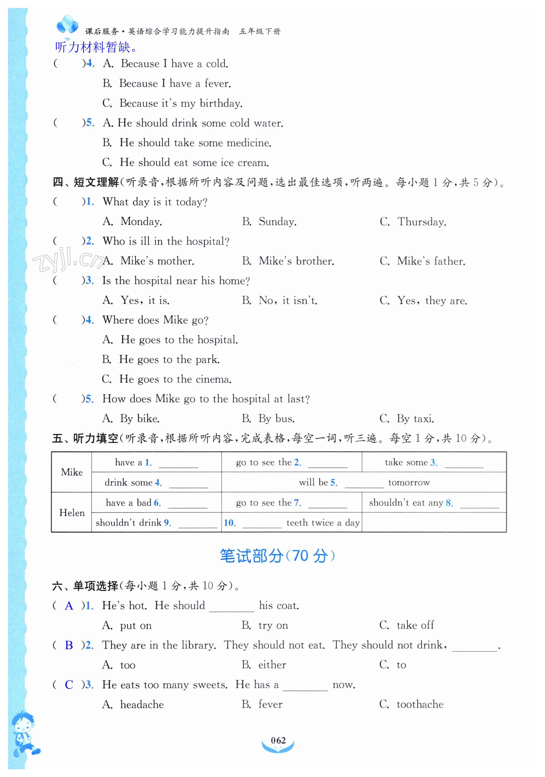 注:目前有些书本章节名称可能整理的还不是很完善,但都是按照顺序排列的,请同学们按照顺序仔细查找。练习册 2023年课后服务综合学习能力提升指南五年级英语下册人教版 答案主要是用来给同学们做完题方便对答案用的,请勿直接抄袭。