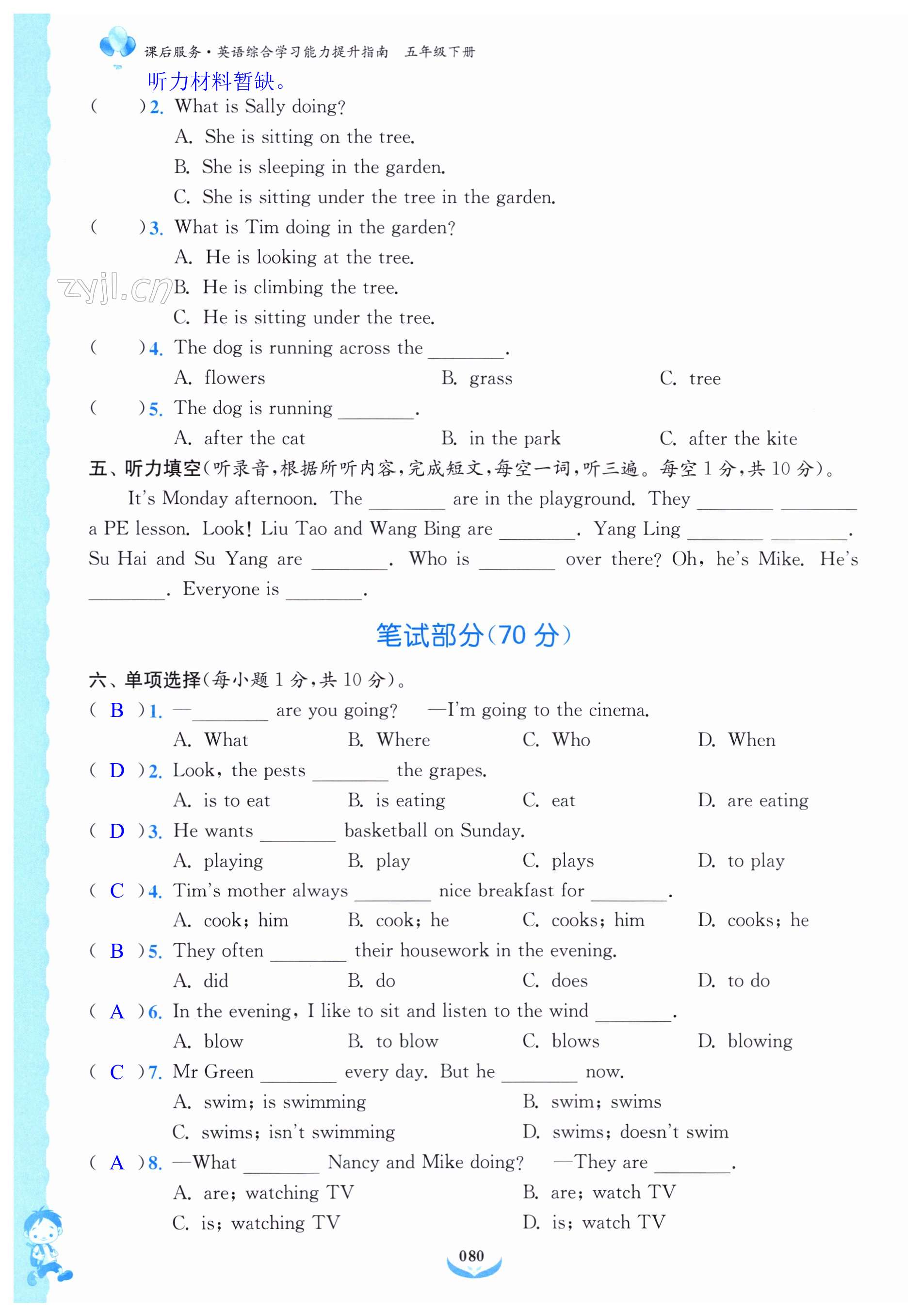 注:目前有些书本章节名称可能整理的还不是很完善,但都是按照顺序排列的,请同学们按照顺序仔细查找。练习册 2023年课后服务综合学习能力提升指南五年级英语下册人教版 答案主要是用来给同学们做完题方便对答案用的,请勿直接抄袭。