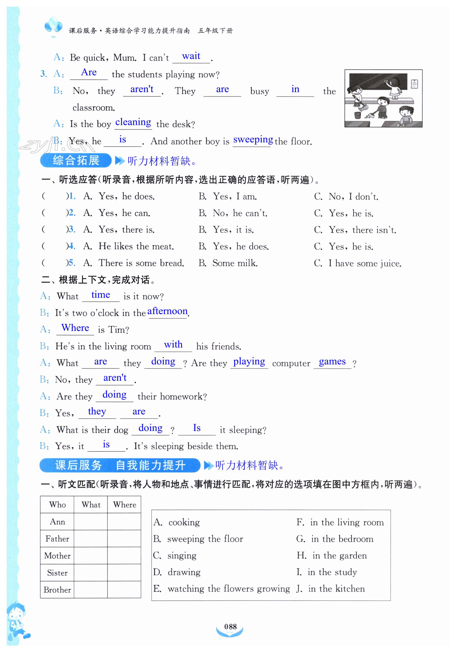 注:目前有些书本章节名称可能整理的还不是很完善,但都是按照顺序排列的,请同学们按照顺序仔细查找。练习册 2023年课后服务综合学习能力提升指南五年级英语下册人教版 答案主要是用来给同学们做完题方便对答案用的,请勿直接抄袭。