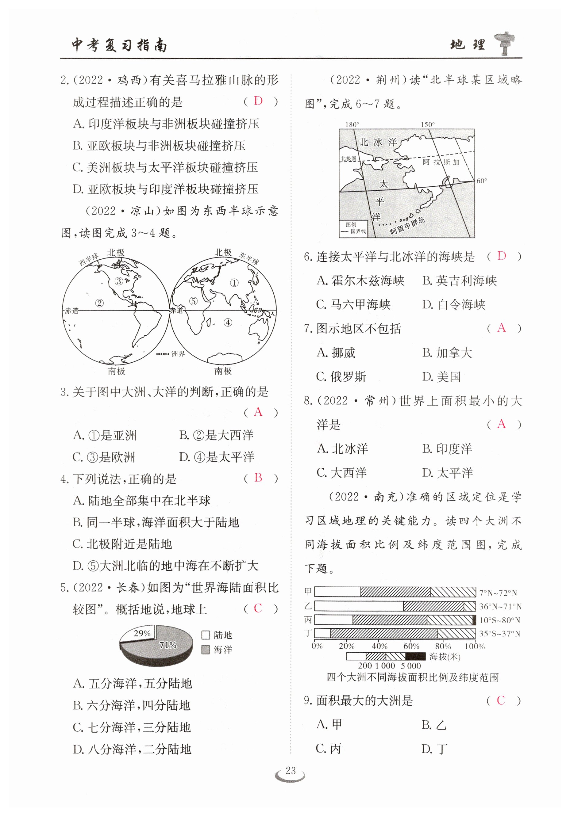 2023年新中考复习指南长江少年儿童出版社地理宜昌专版