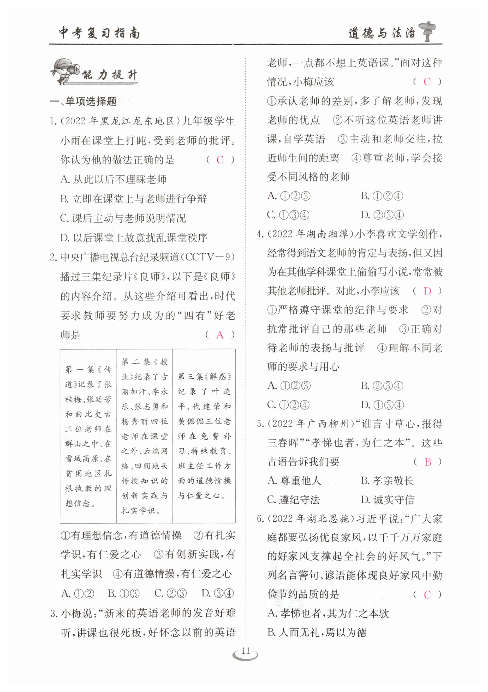 注:目前有些书本章节名称可能整理的还不是很完善,但都是按照顺序排列的,请同学们按照顺序仔细查找。练习册 2023年新中考复习指南长江少年儿童出版社道德与法治宜昌专版 答案主要是用来给同学们做完题方便对答案用的,请勿直接抄袭。