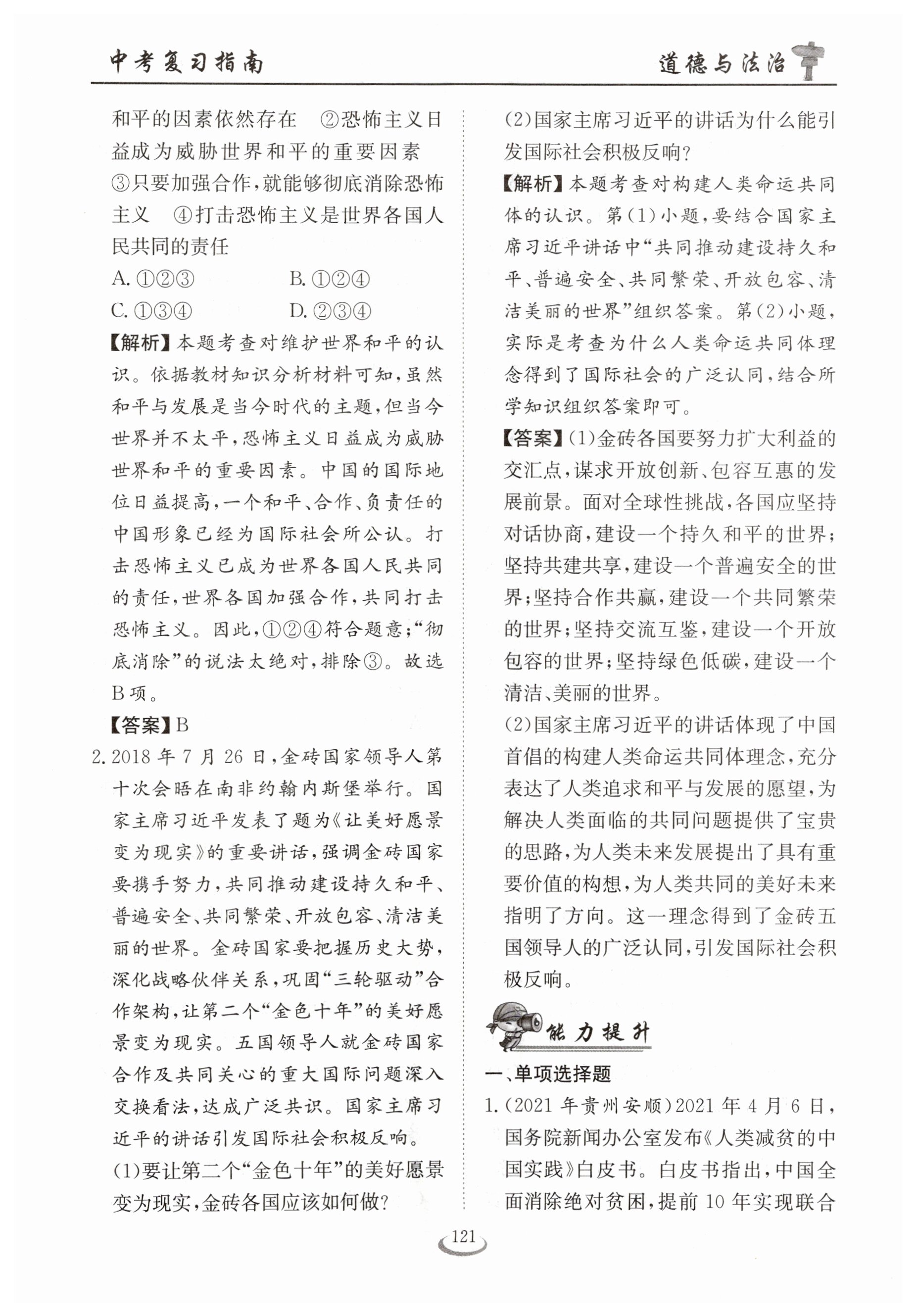 注:目前有些书本章节名称可能整理的还不是很完善,但都是按照顺序排列的,请同学们按照顺序仔细查找。练习册 2023年新中考复习指南长江少年儿童出版社道德与法治宜昌专版 答案主要是用来给同学们做完题方便对答案用的,请勿直接抄袭。
