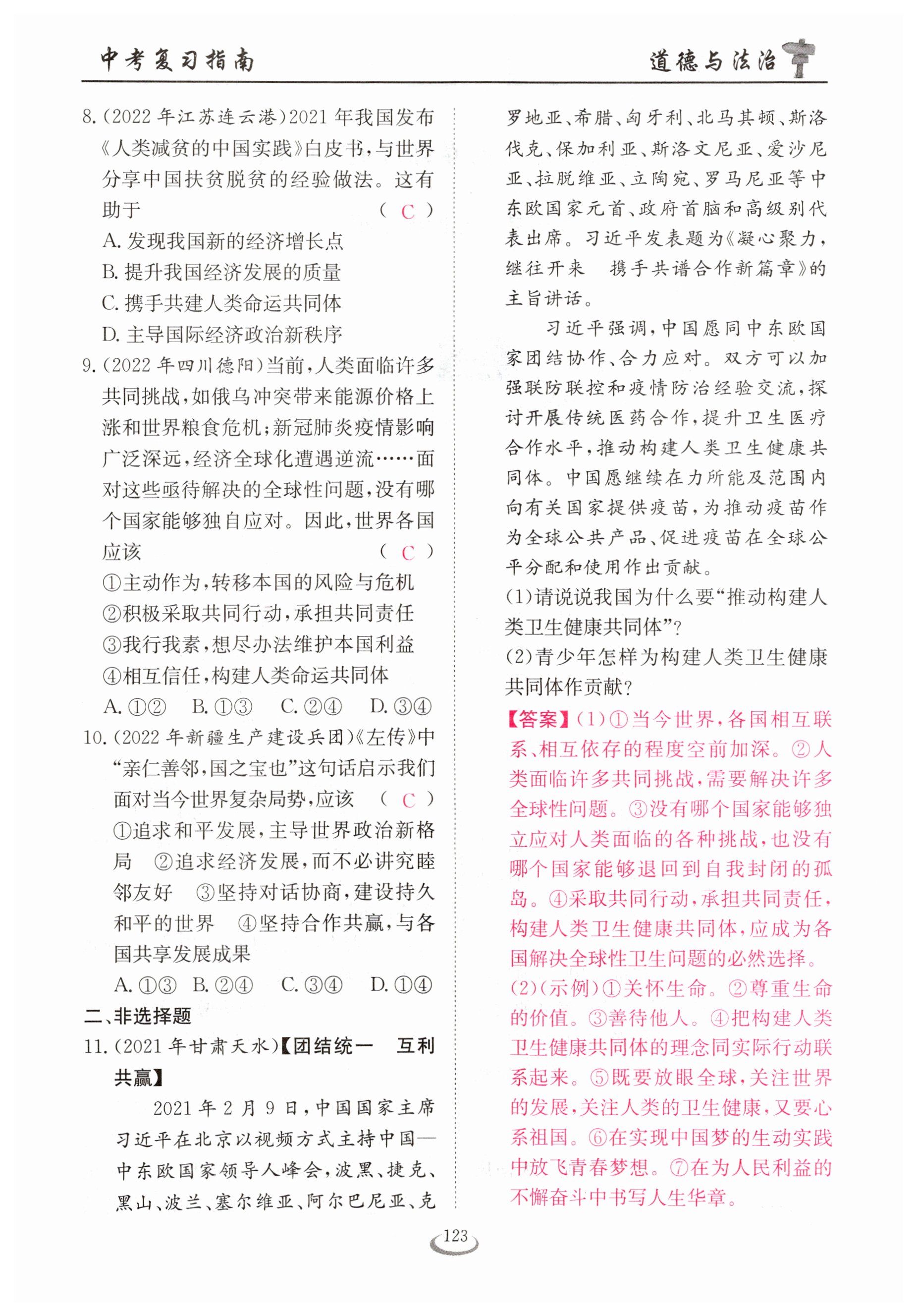 注:目前有些书本章节名称可能整理的还不是很完善,但都是按照顺序排列的,请同学们按照顺序仔细查找。练习册 2023年新中考复习指南长江少年儿童出版社道德与法治宜昌专版 答案主要是用来给同学们做完题方便对答案用的,请勿直接抄袭。