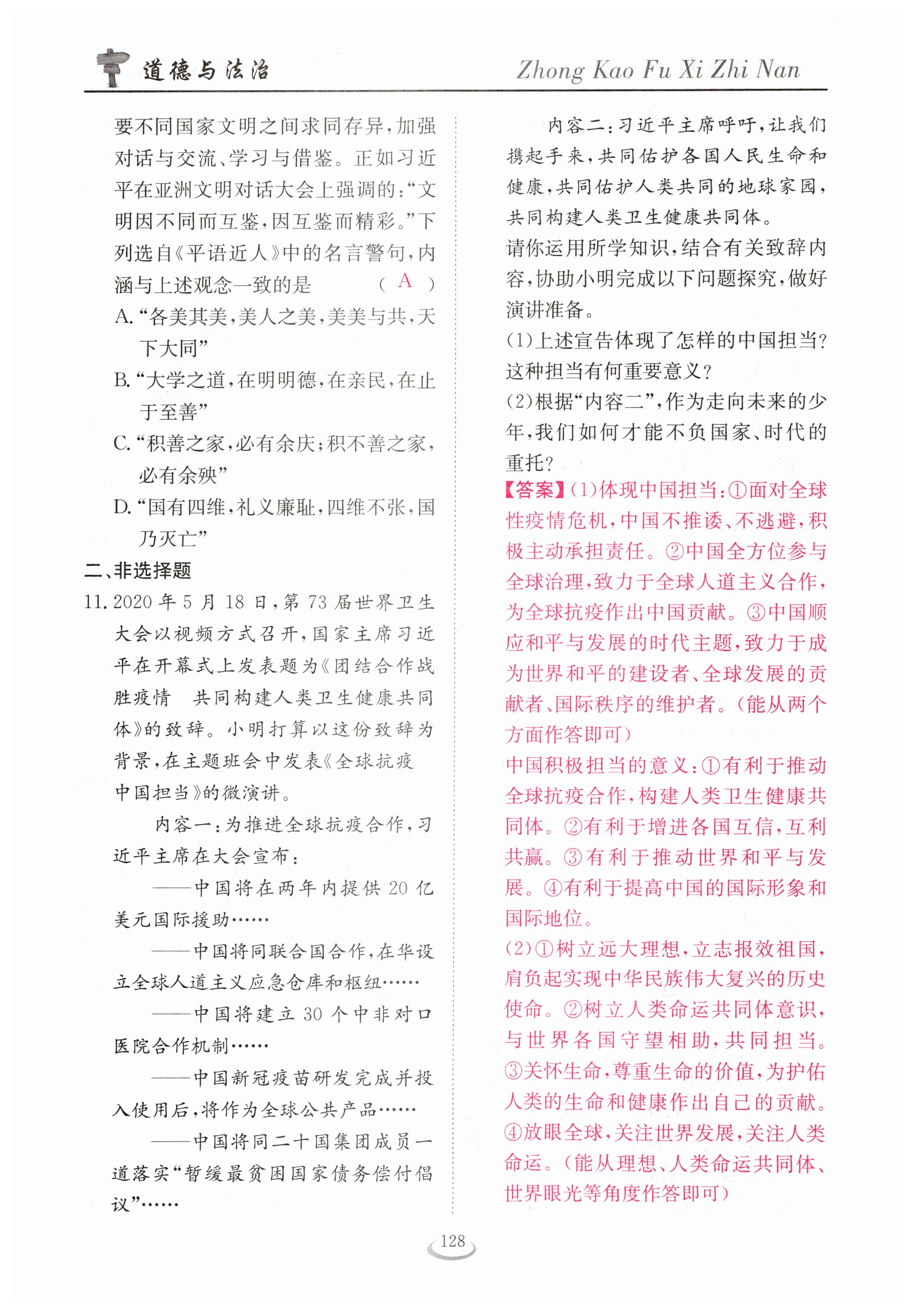 注:目前有些书本章节名称可能整理的还不是很完善,但都是按照顺序排列的,请同学们按照顺序仔细查找。练习册 2023年新中考复习指南长江少年儿童出版社道德与法治宜昌专版 答案主要是用来给同学们做完题方便对答案用的,请勿直接抄袭。