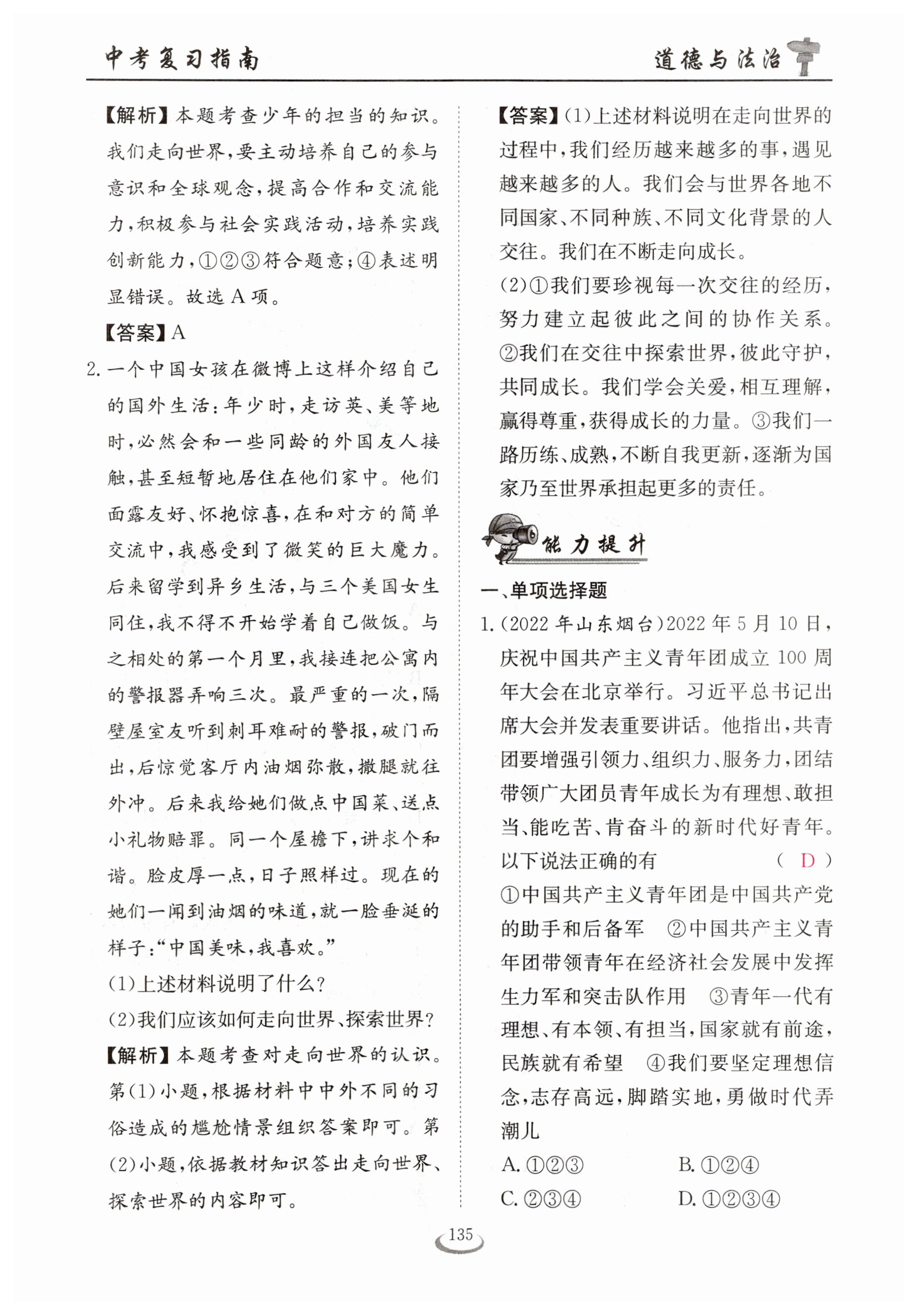 注:目前有些书本章节名称可能整理的还不是很完善,但都是按照顺序排列的,请同学们按照顺序仔细查找。练习册 2023年新中考复习指南长江少年儿童出版社道德与法治宜昌专版 答案主要是用来给同学们做完题方便对答案用的,请勿直接抄袭。