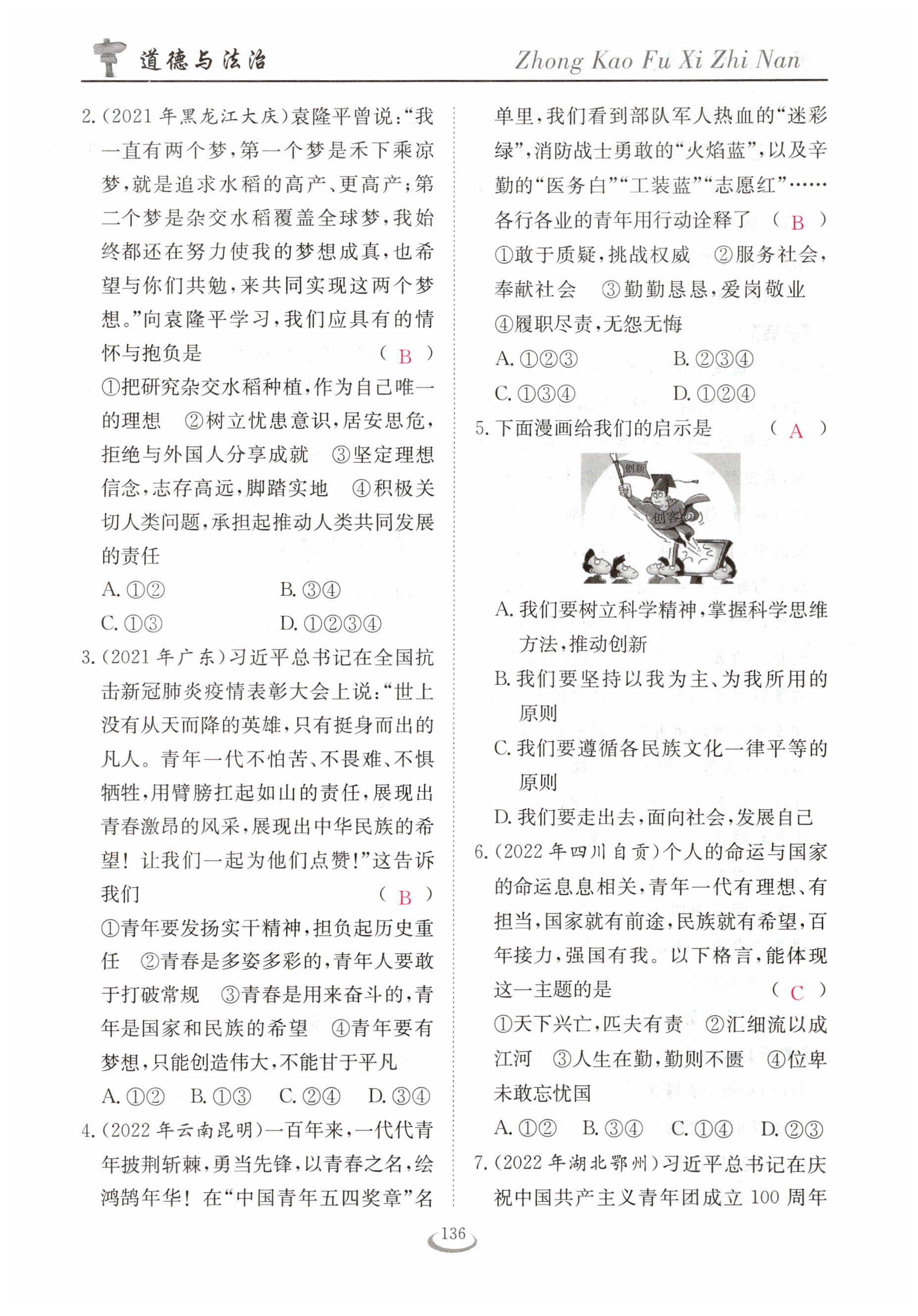 注:目前有些书本章节名称可能整理的还不是很完善,但都是按照顺序排列的,请同学们按照顺序仔细查找。练习册 2023年新中考复习指南长江少年儿童出版社道德与法治宜昌专版 答案主要是用来给同学们做完题方便对答案用的,请勿直接抄袭。