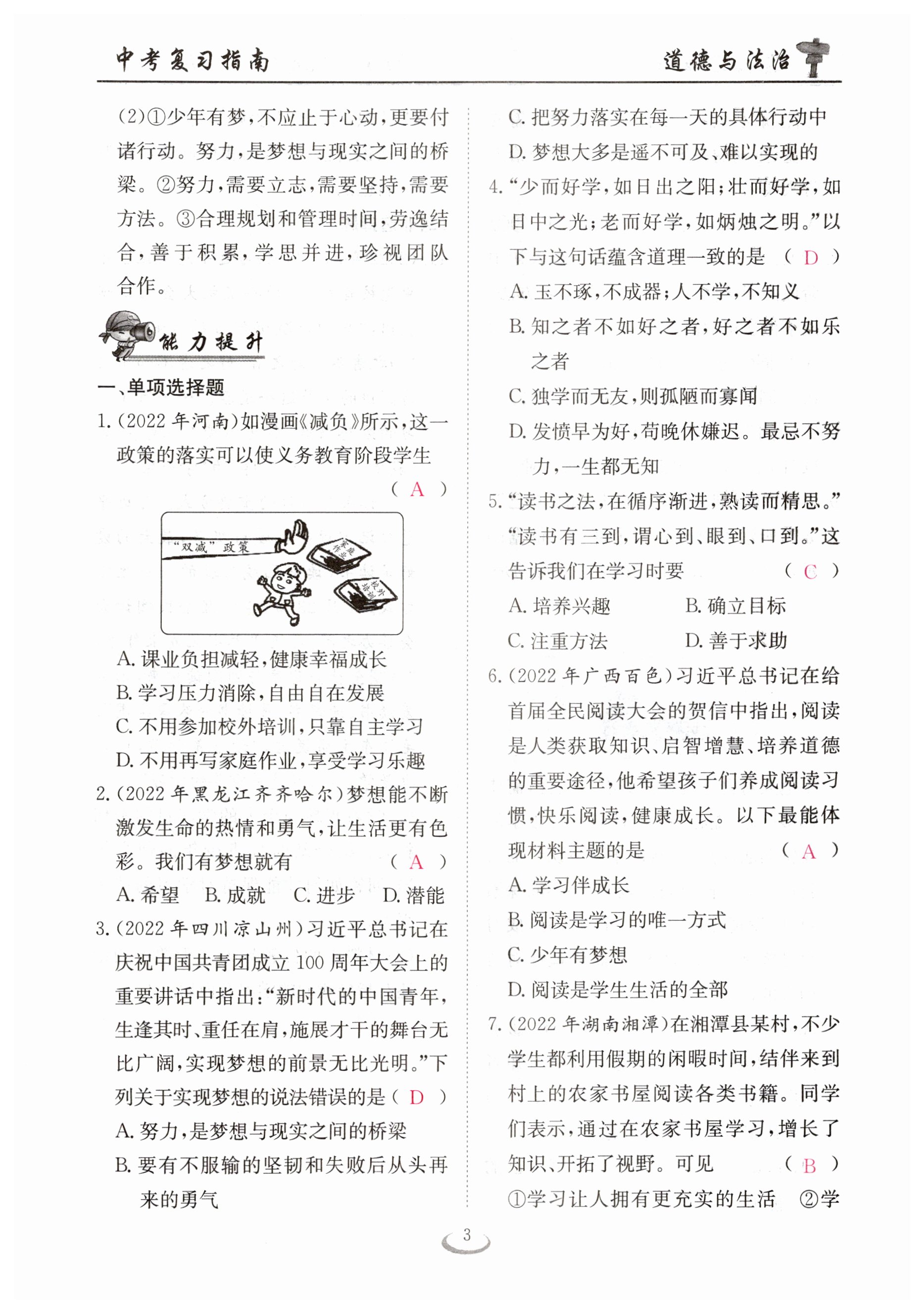 注:目前有些书本章节名称可能整理的还不是很完善,但都是按照顺序排列的,请同学们按照顺序仔细查找。练习册 2023年新中考复习指南长江少年儿童出版社道德与法治宜昌专版 答案主要是用来给同学们做完题方便对答案用的,请勿直接抄袭。