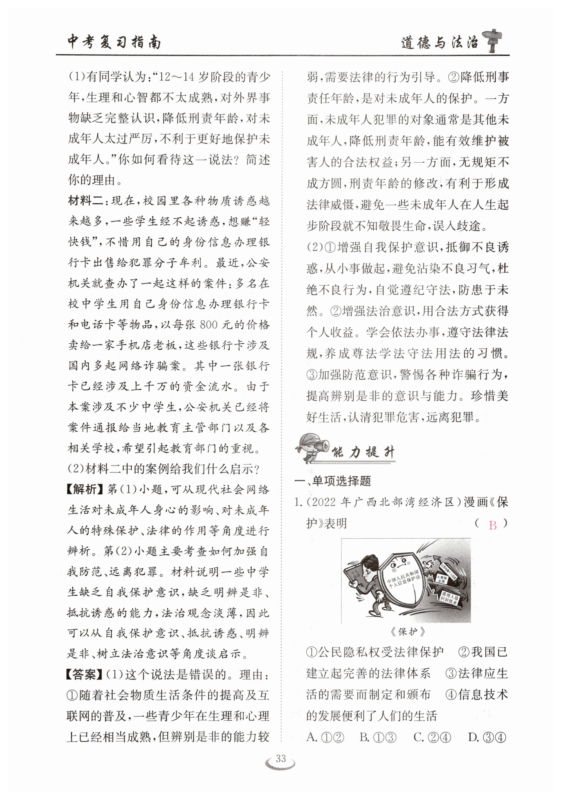 注:目前有些书本章节名称可能整理的还不是很完善,但都是按照顺序排列的,请同学们按照顺序仔细查找。练习册 2023年新中考复习指南长江少年儿童出版社道德与法治宜昌专版 答案主要是用来给同学们做完题方便对答案用的,请勿直接抄袭。